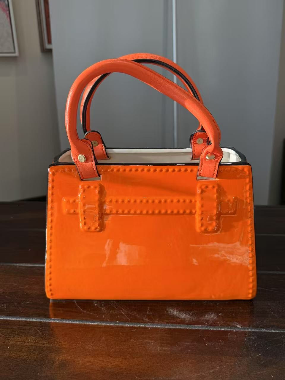 Bling Dolomite Bag Vase in Vivid Orange Colour Ceramic Finish