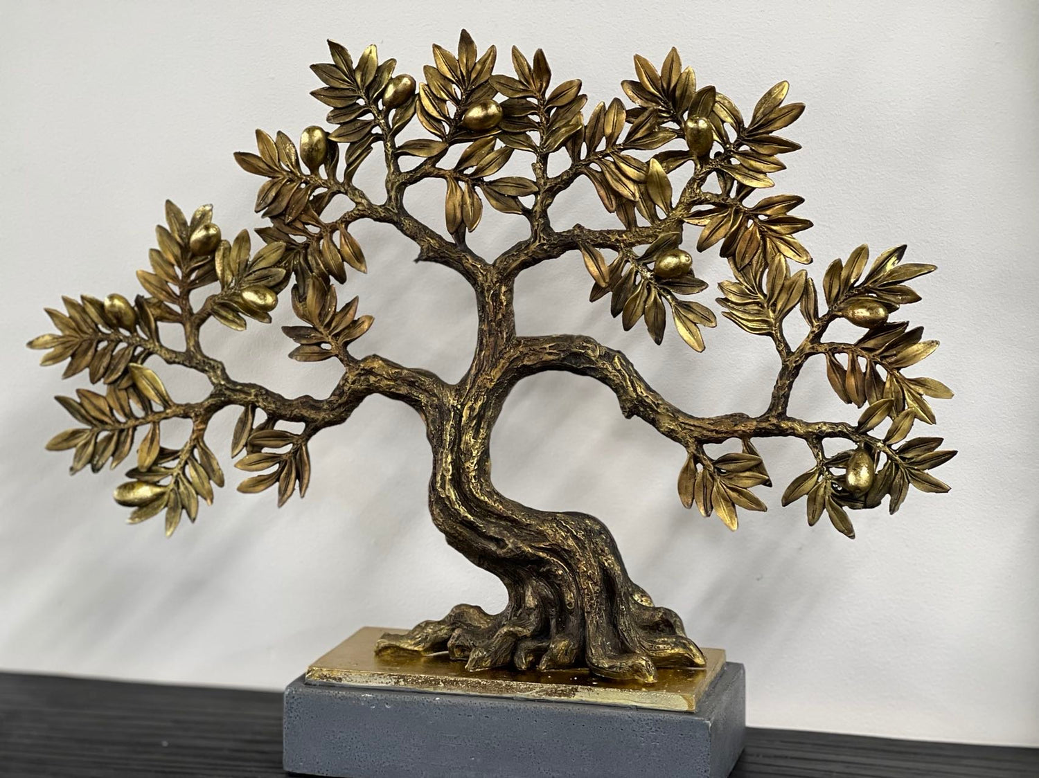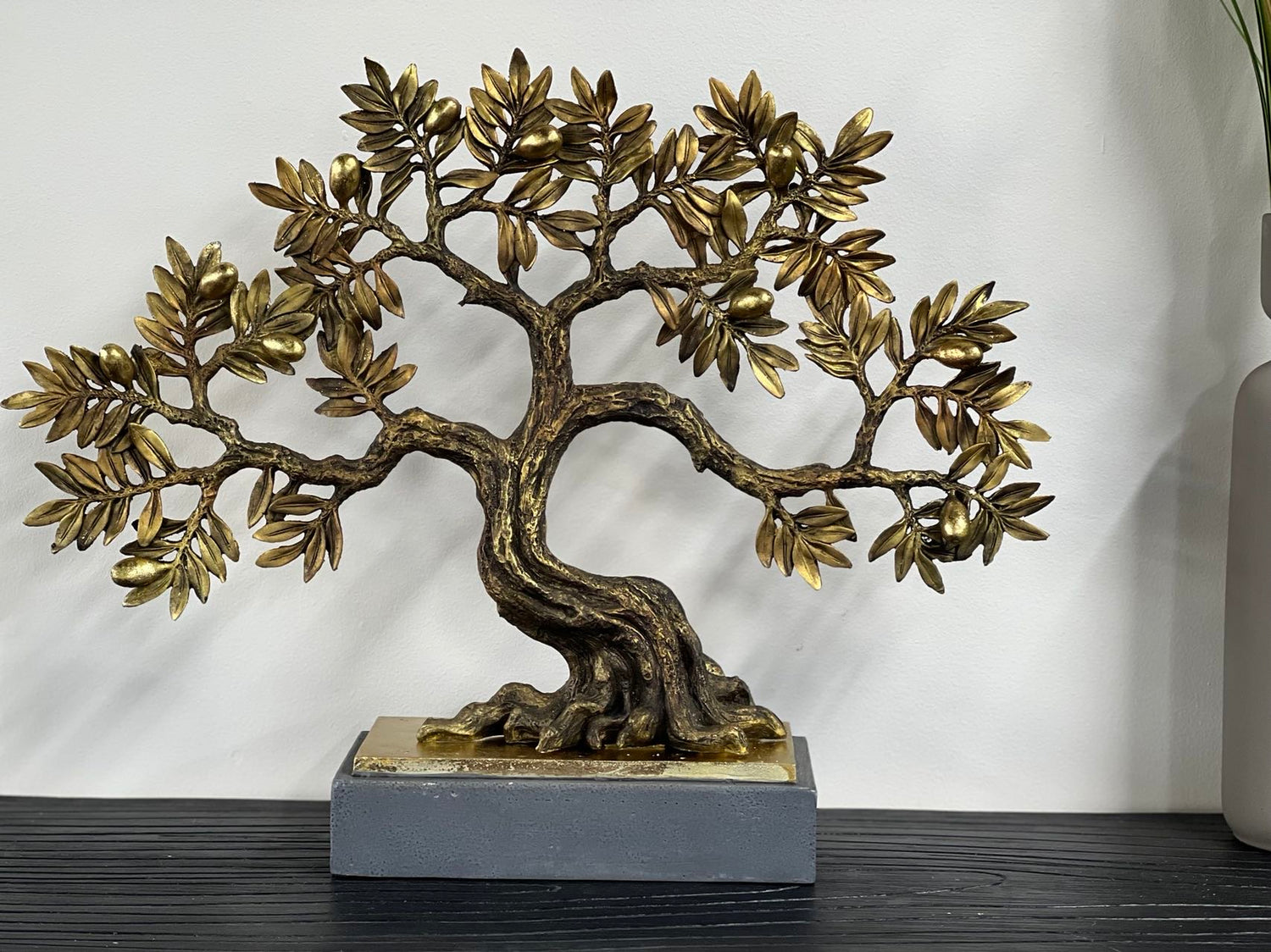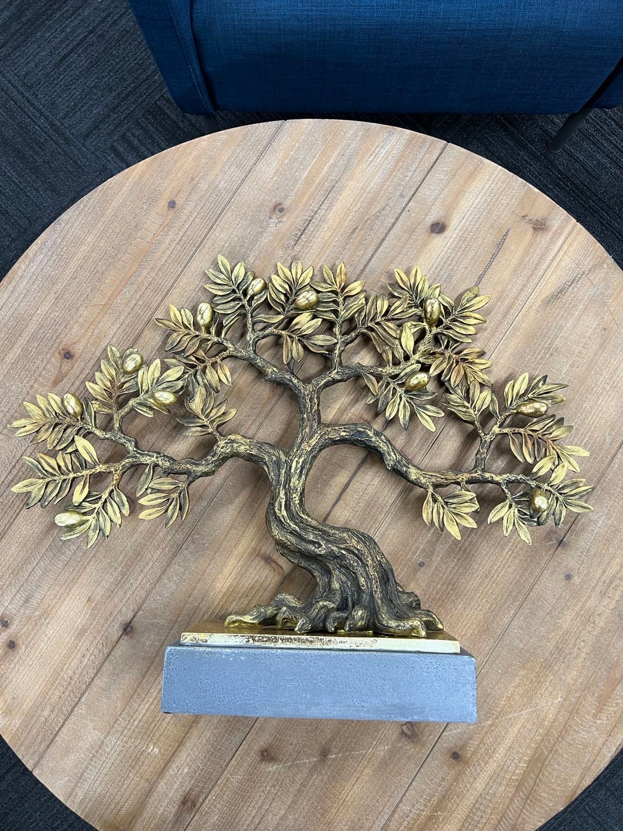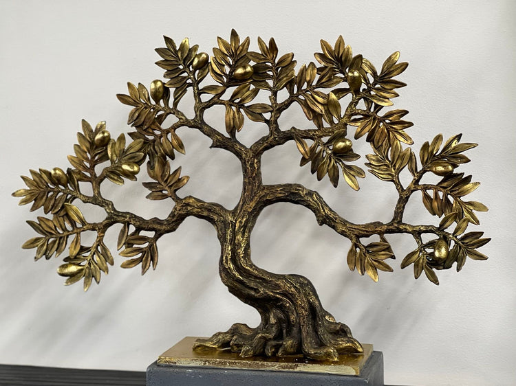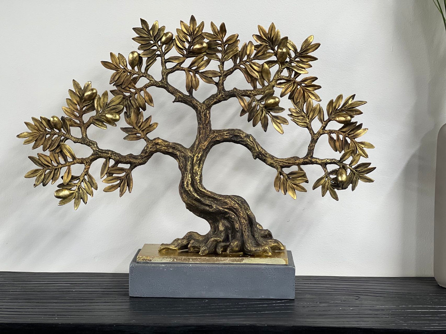 Our newly designed stunning Olive Tree shaped ornament finished in Gold and earthy colours on a stand.