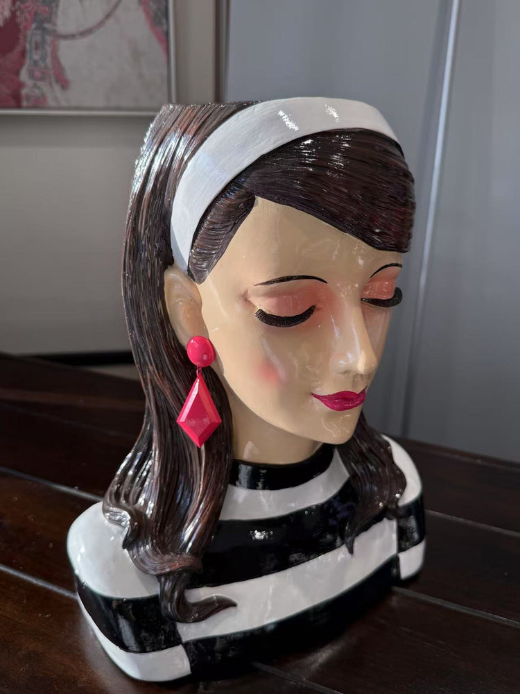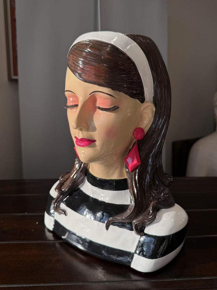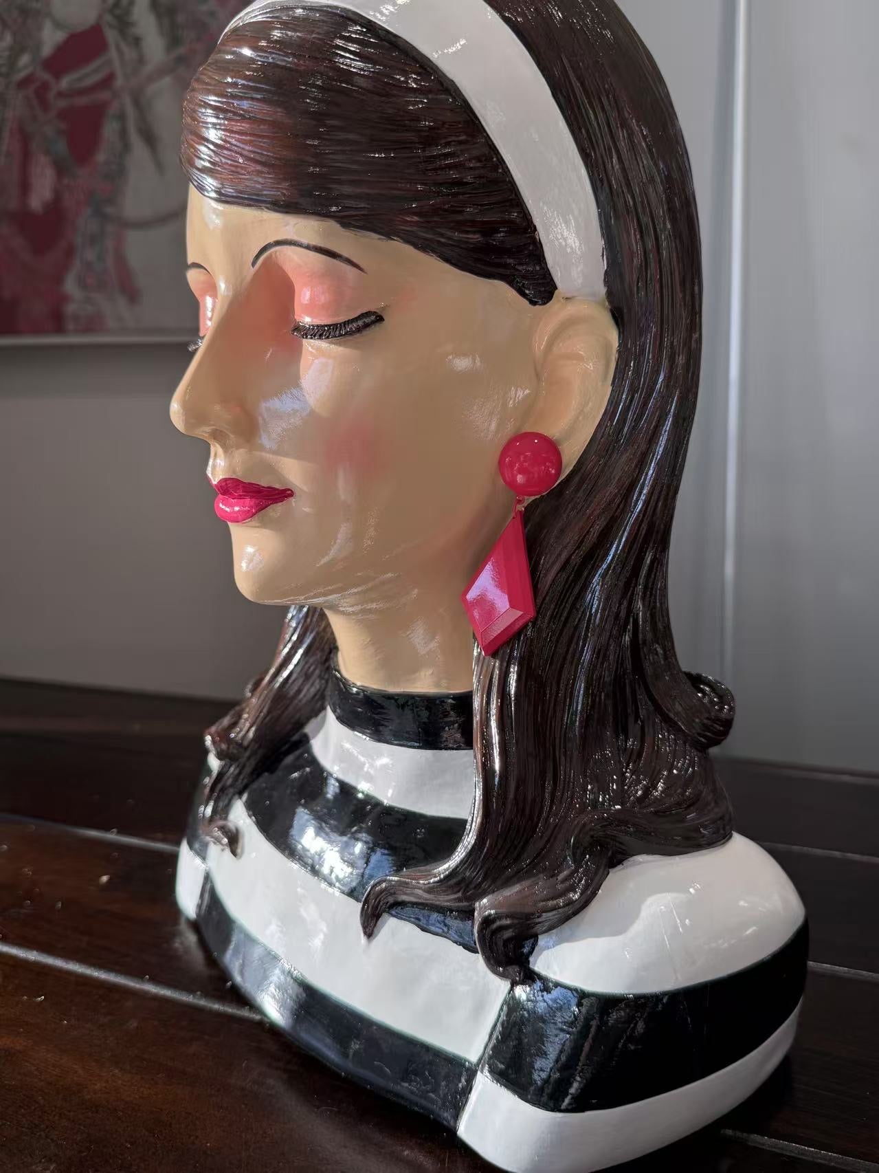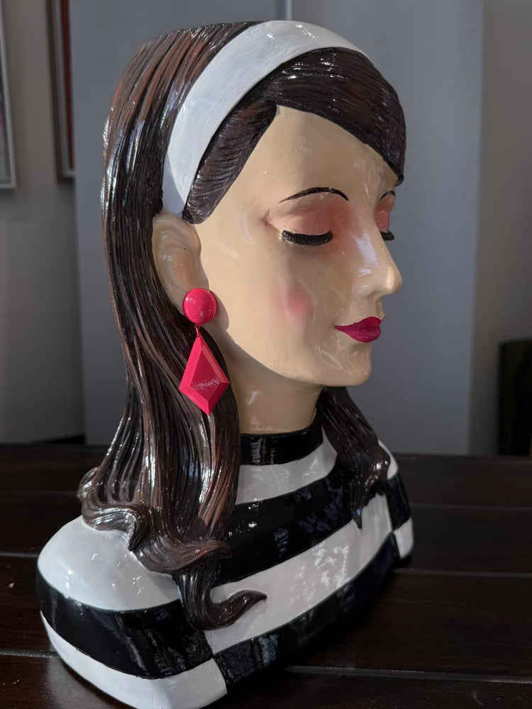 Famosa Bust Head with Earrings in Vivid Colours Ceramic Finish