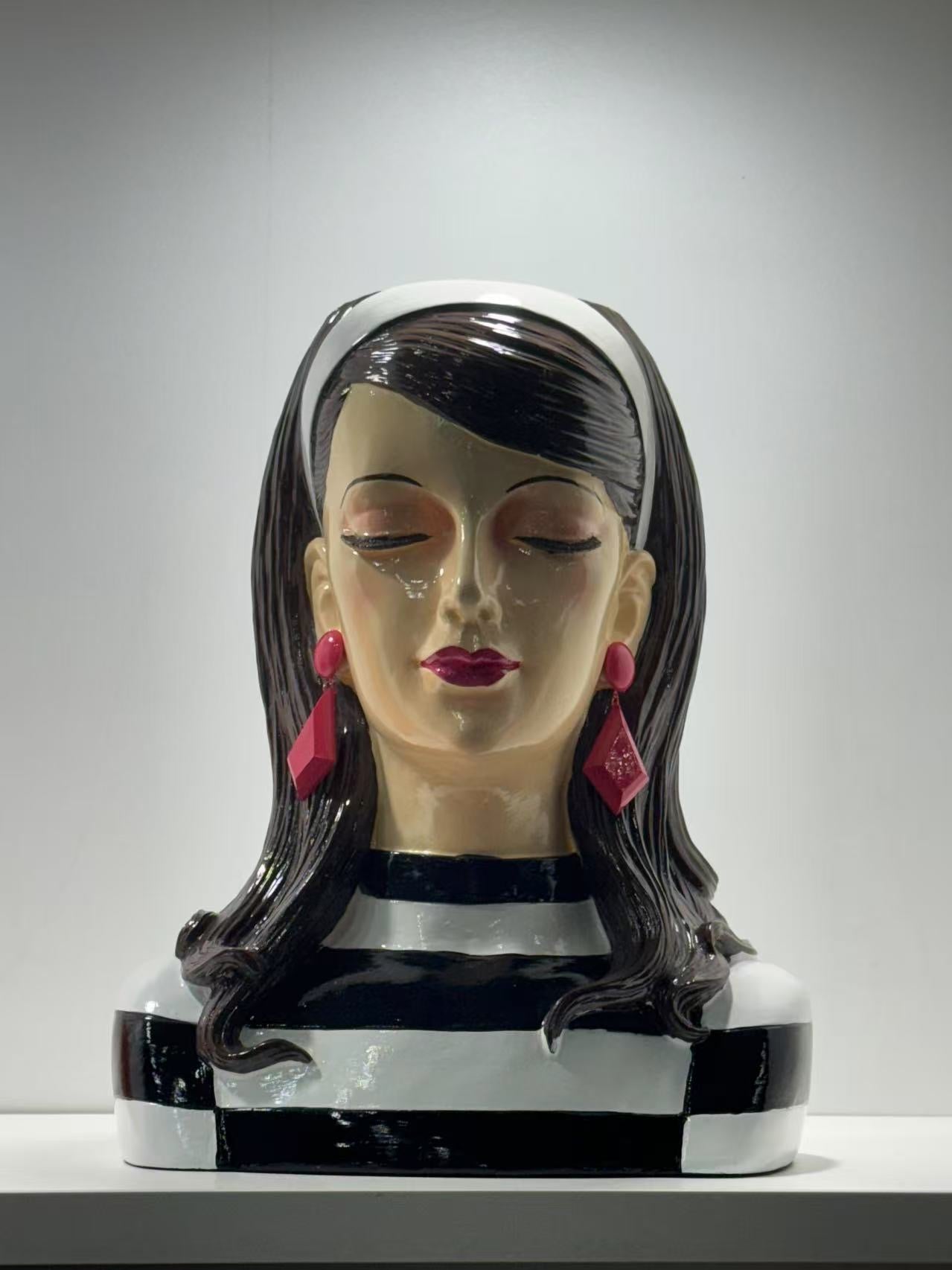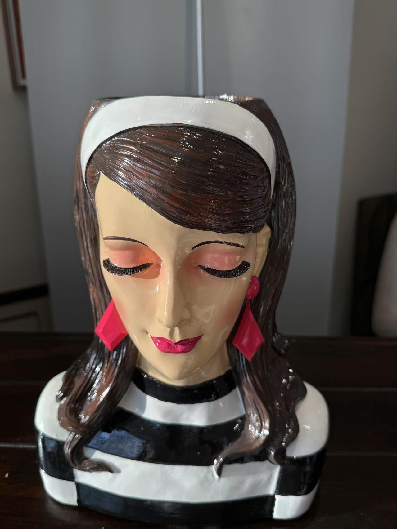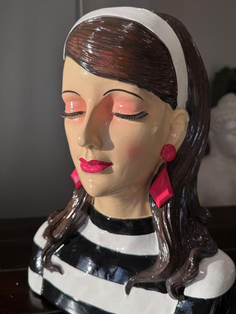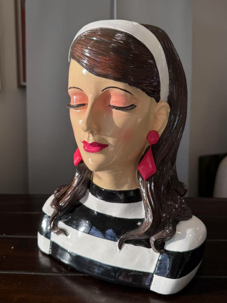 Famosa Bust Head with Earrings in Vivid Colours Ceramic Finish