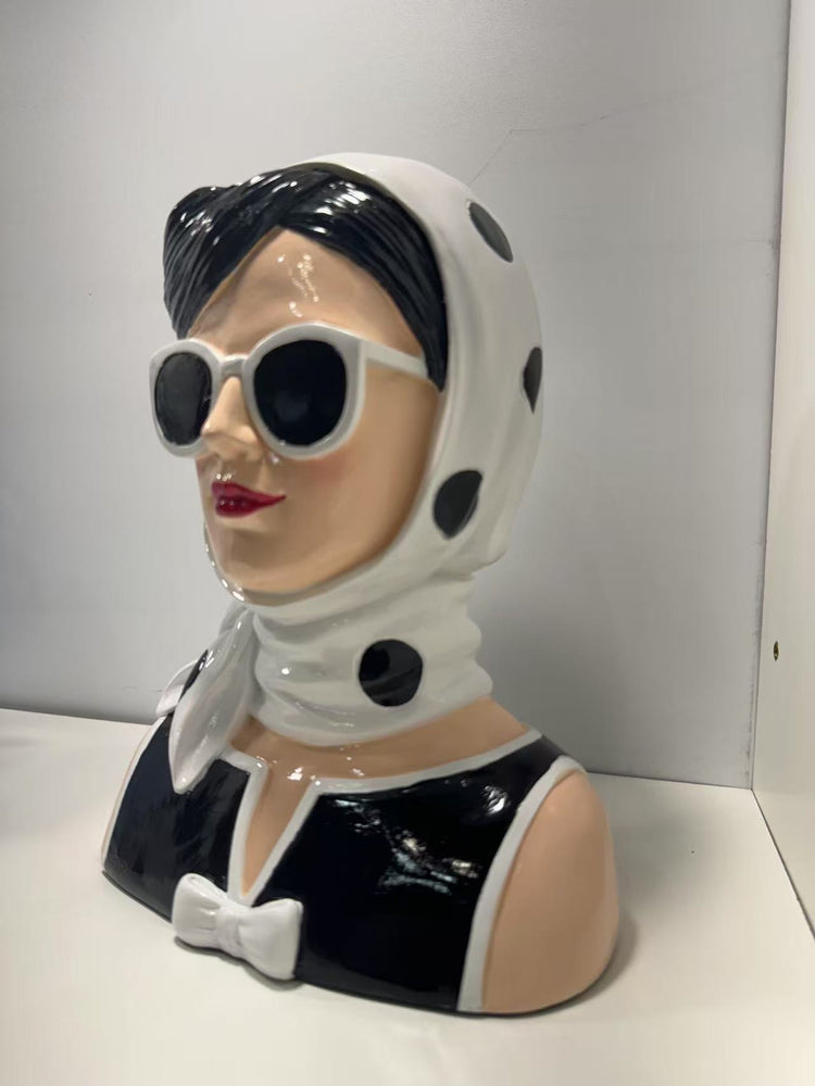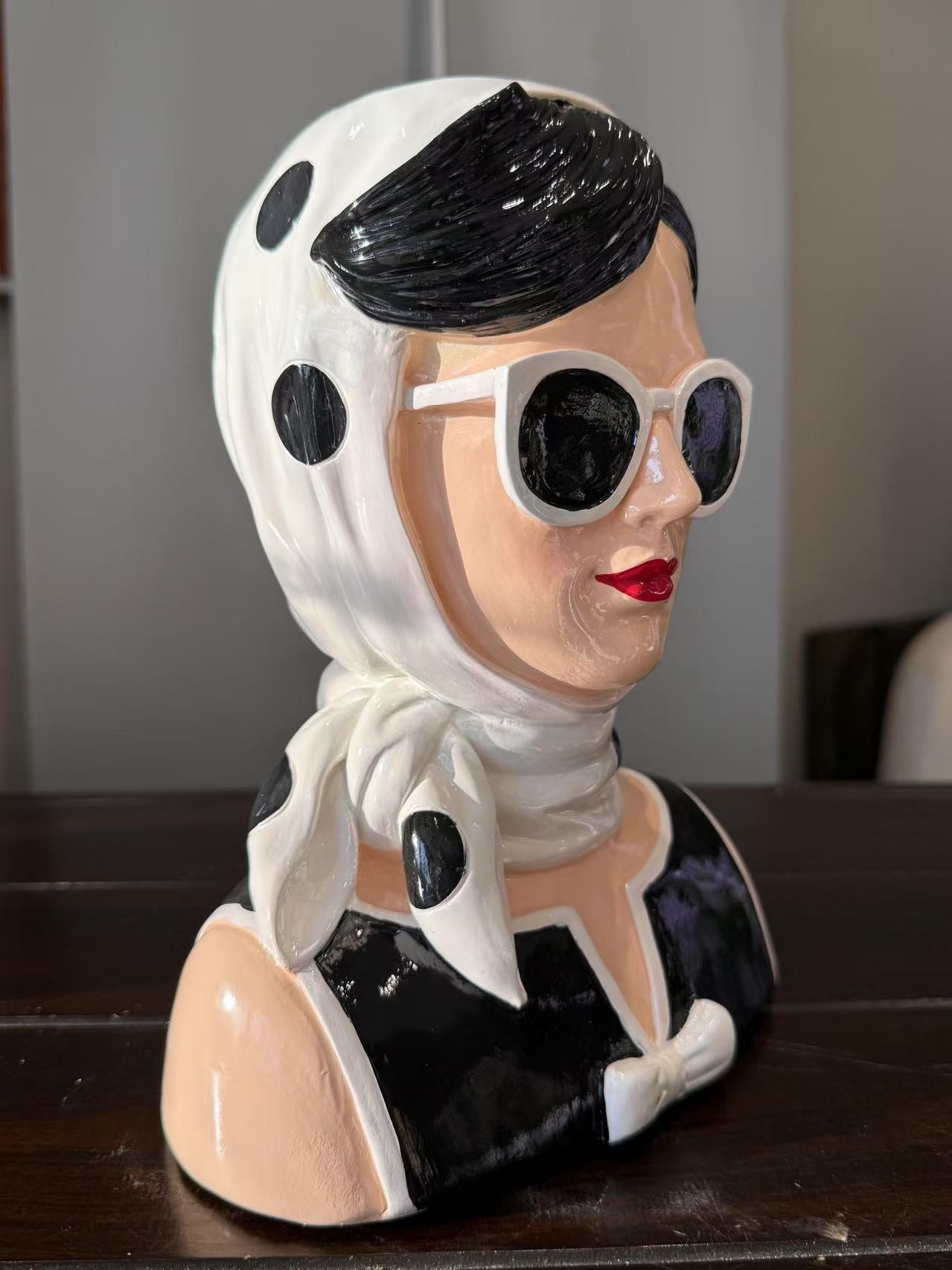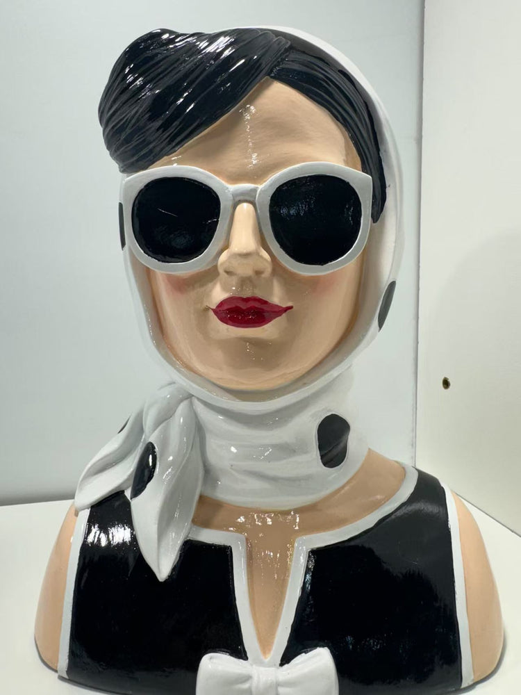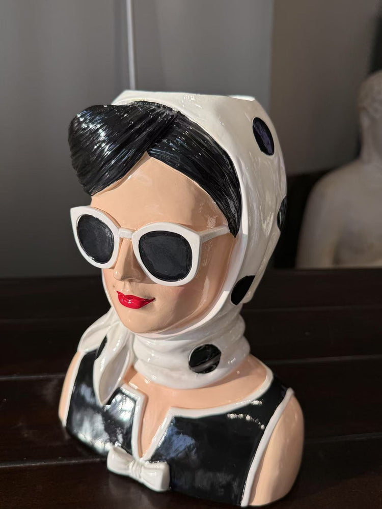 Fashionista Bust Head with Earrings in Vivid Colours Ceramic Finish
