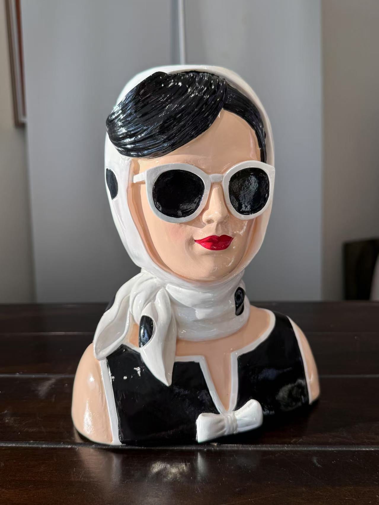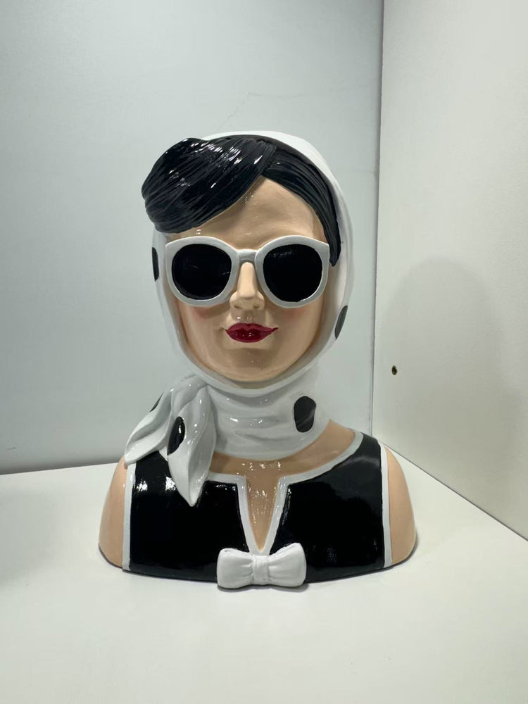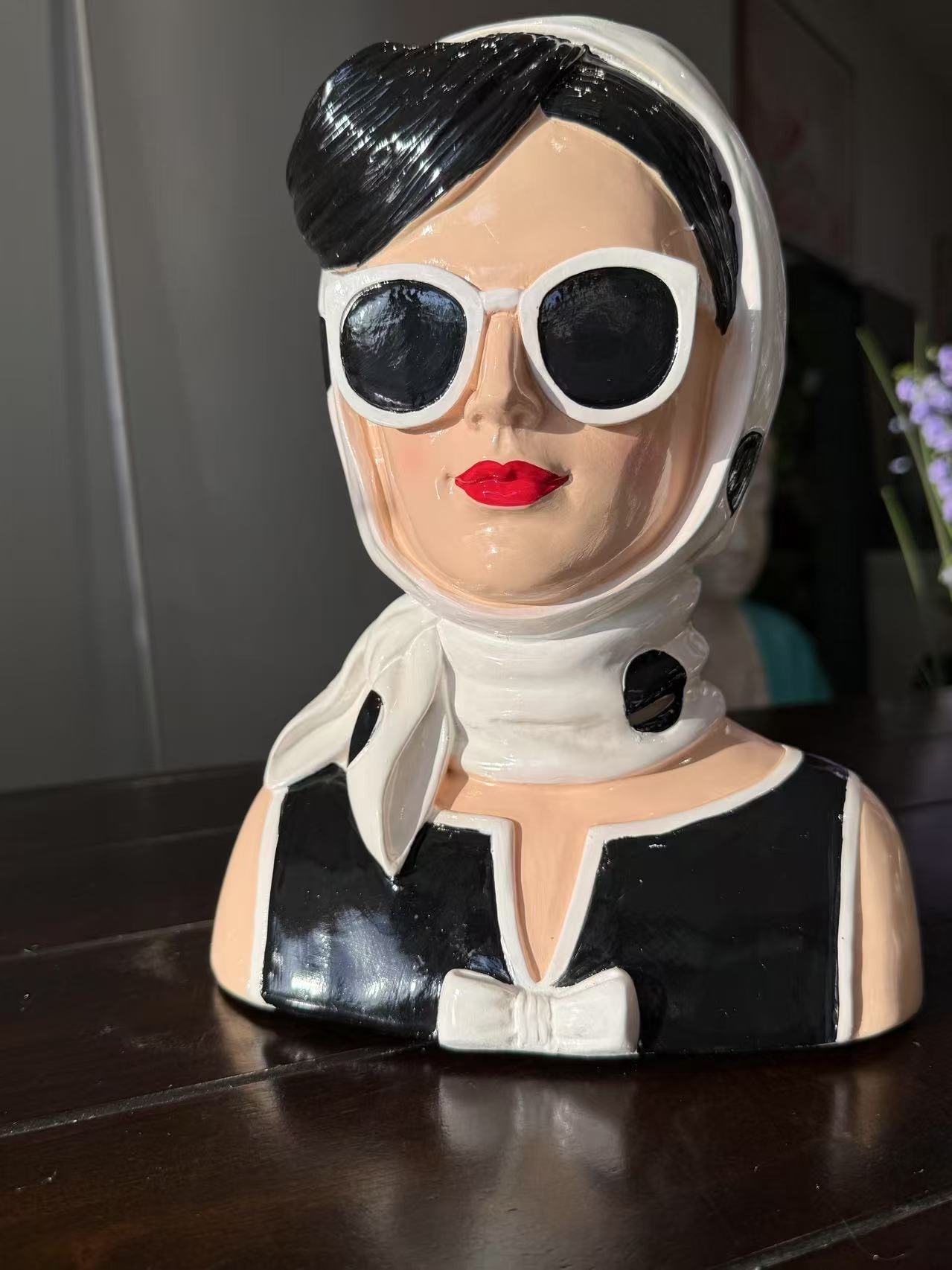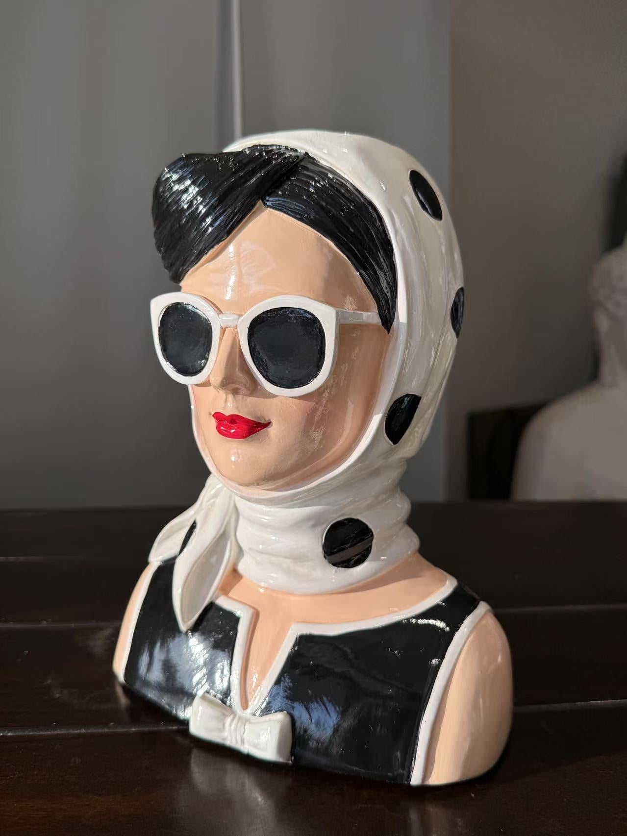 Fashionista Bust Head with Earrings in Vivid Colours Ceramic Finish
