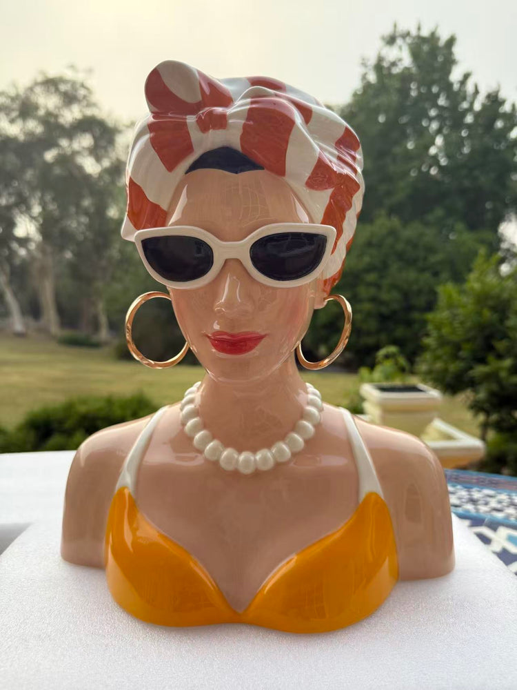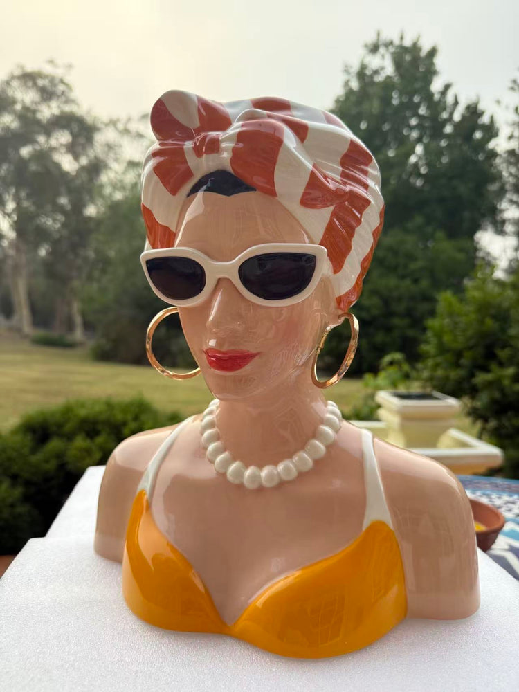 Orgoliosa Vase Head & Earrings in Vivid Colours Ceramic Finish
