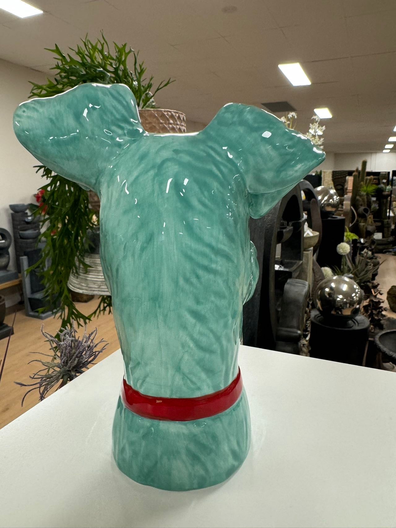 SCHNAUZER HEAD VASE TURQUOISE DOLOMITE PERFECT GIFT COLLECTORS ITEM