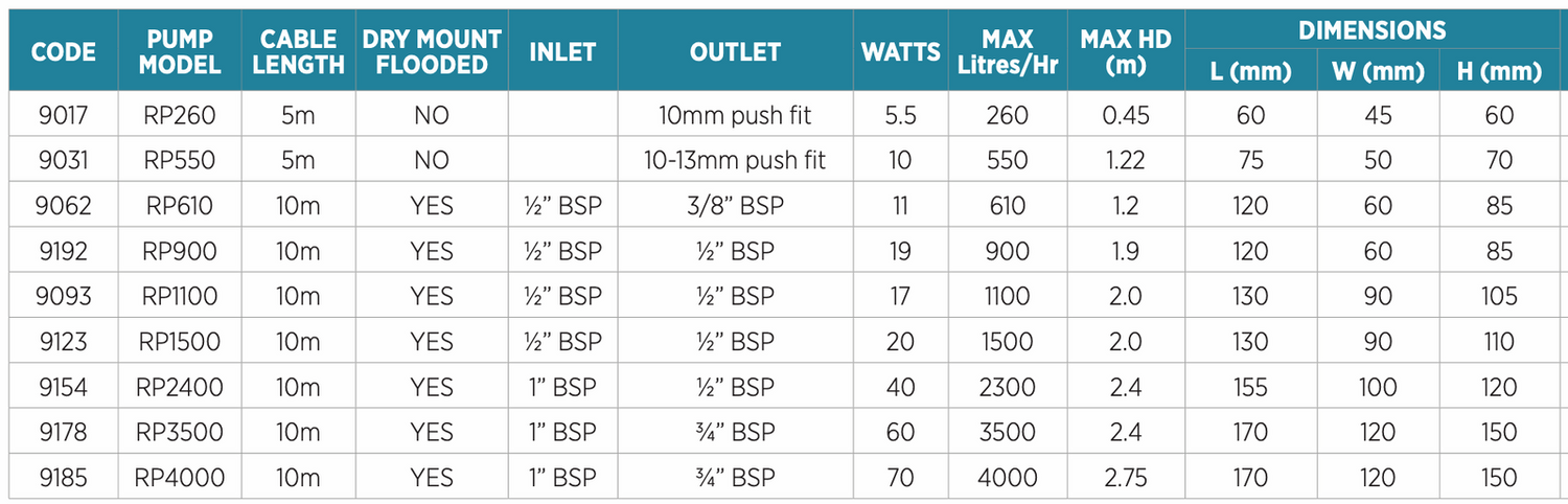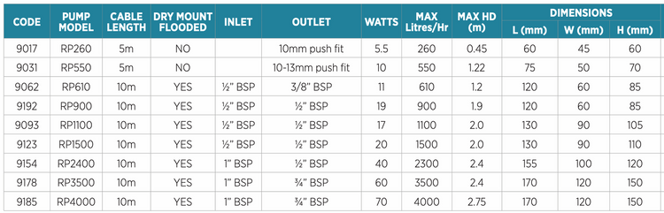 REEFE RP8000 POND AND WATER FEATURE PUMP - 133 L/MIN