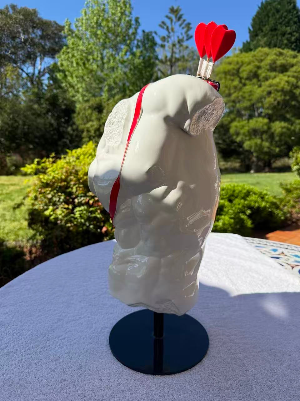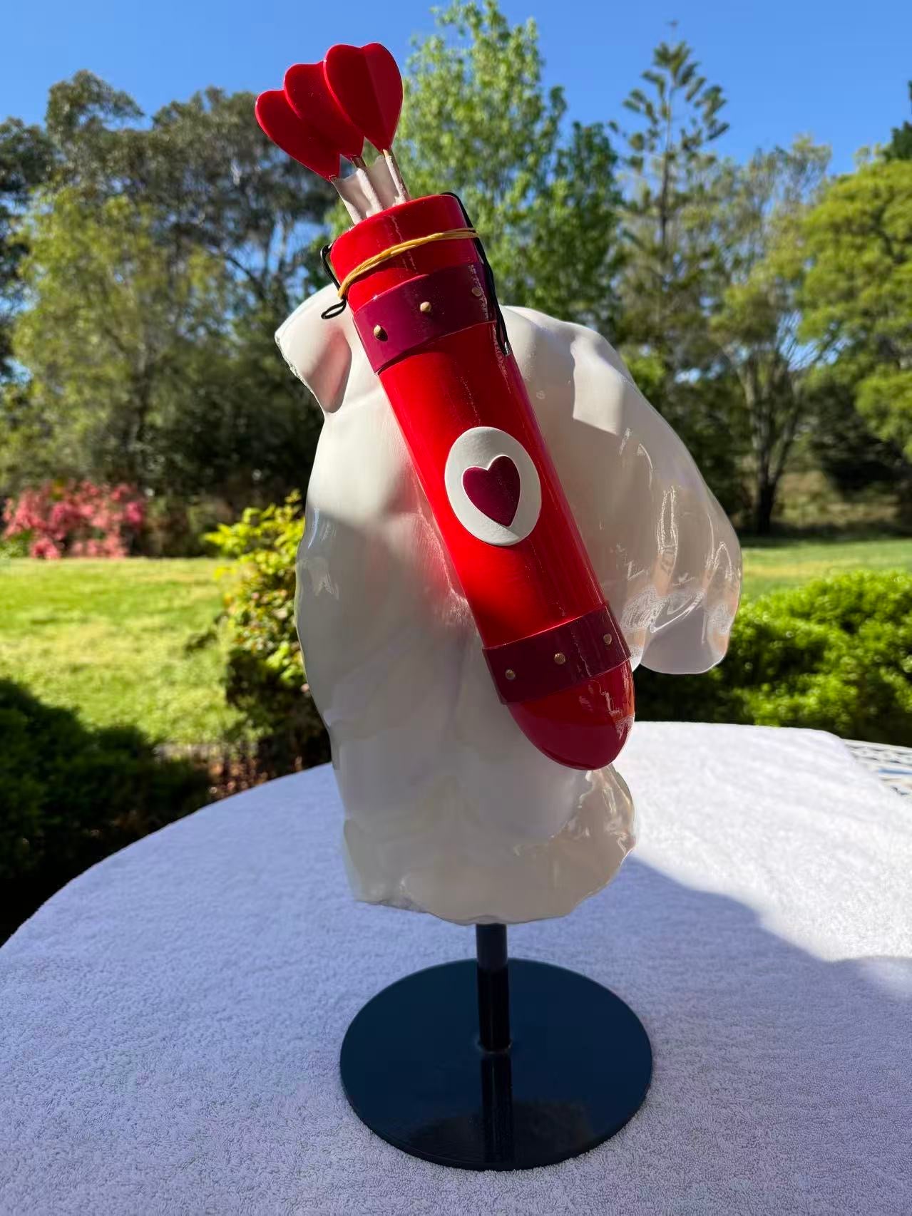 Dimensions: 28.2x23.8x58cm colour ceramic white with a red strap and bows.