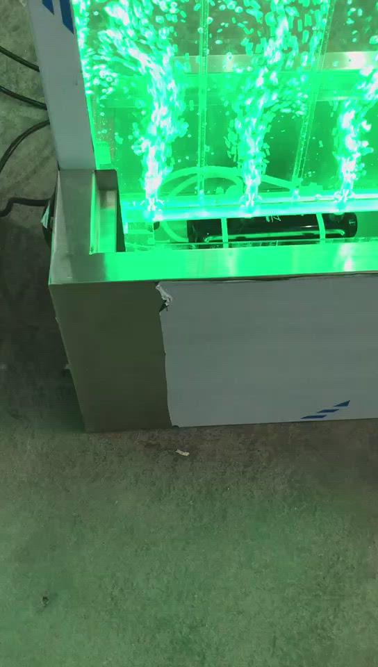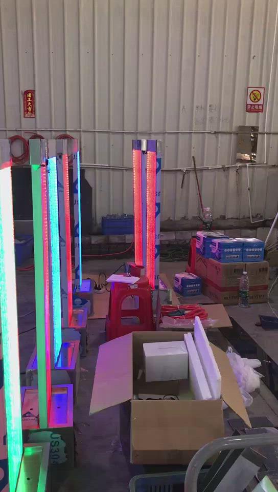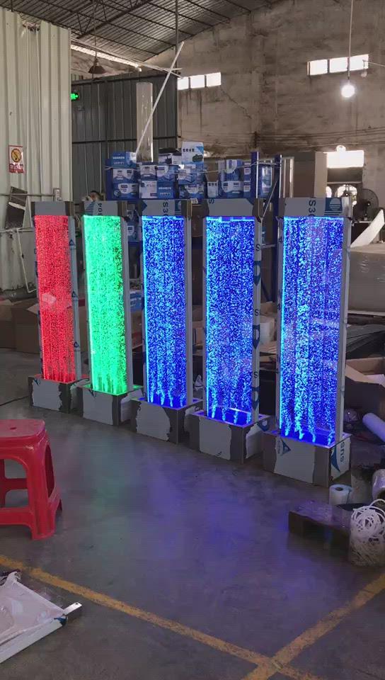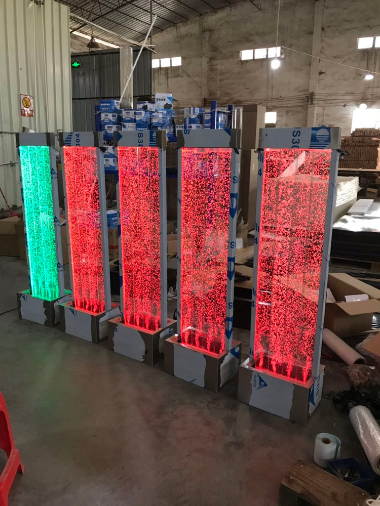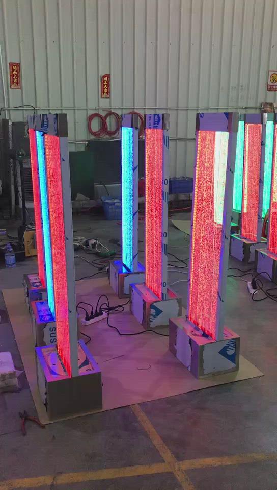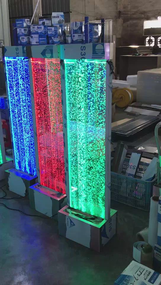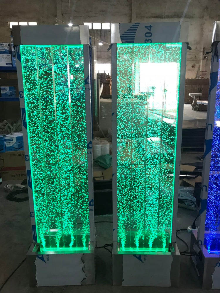 AGADIR is a contemporary floor standing Bubble Wall with remote control & changing water & lights settings, complete frame in silver stainless steel.