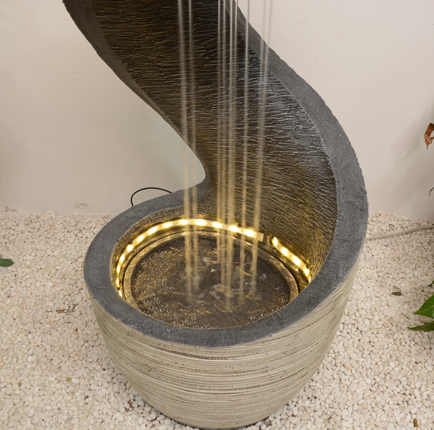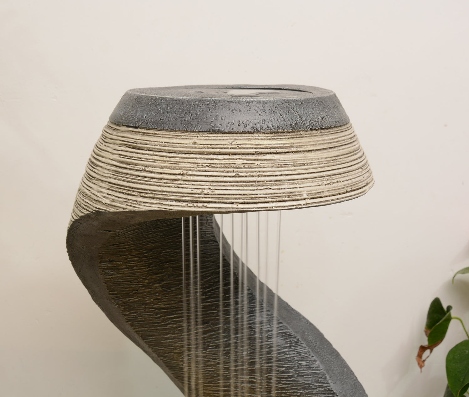 Allegria water feature has been beautifully crafted from polystone a mixture of cement and fiberglass to create this Rain Effect look before trickling down the face of the curtain on this Water Fountain. It is an authentic-looking piece that is certain to exude ideas of affluence and luxury in your home or garden, and it will indubitably make an impressive focal point in either setting.