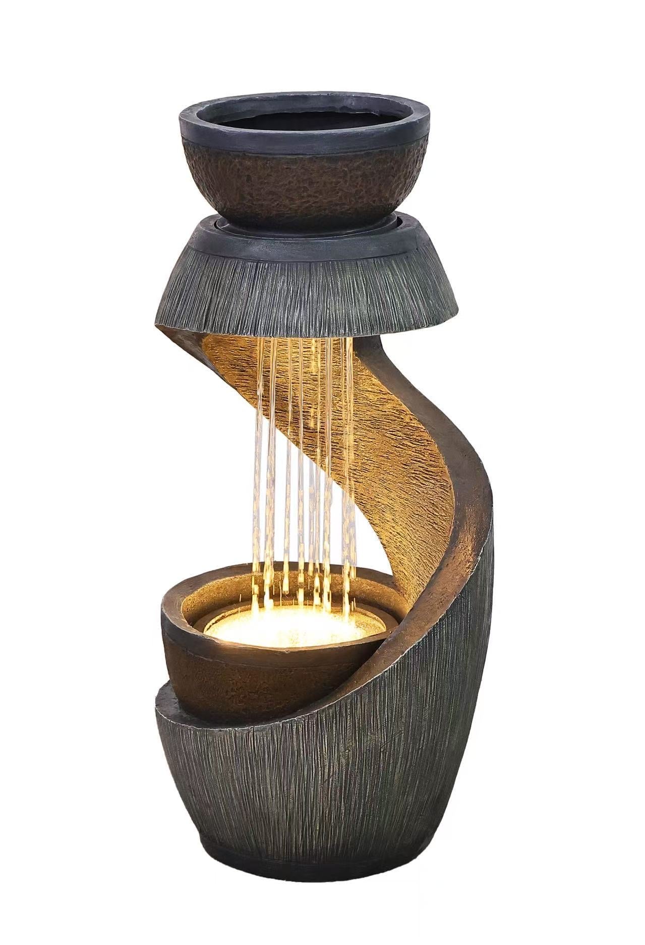 KUNA water feature has been beautifully crafted from polystone a mixture of cement and fiberglass to create this Rain Effect look before trickling down the face of the curtain on this Water Fountain. It is an authentic-looking piece that is certain to exude ideas of affluence and luxury in your home or garden, and it will indubitably make an impressive focal point in either setting. Inspired from its larger sister Allegria.