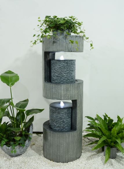 This elegant water feature has been exquisitely crafted and cleverly disguised to appear as stone, but is actually made from high quality polyresin material, which is lightweight, durable, and long-lasting. This allows for easy assembly and installation, despite its height, while at the same time ensuring that it will endure our fickle British weather.