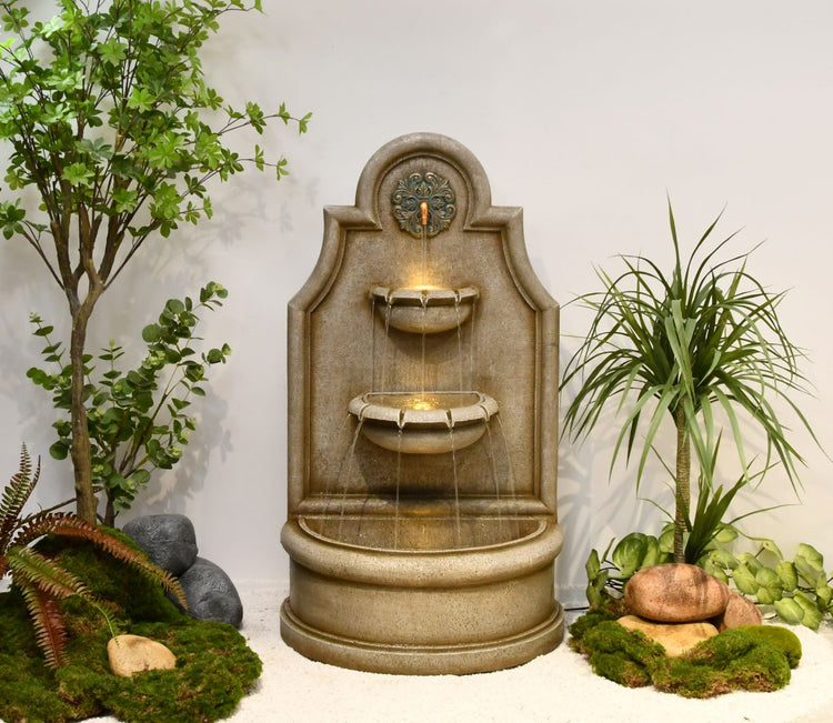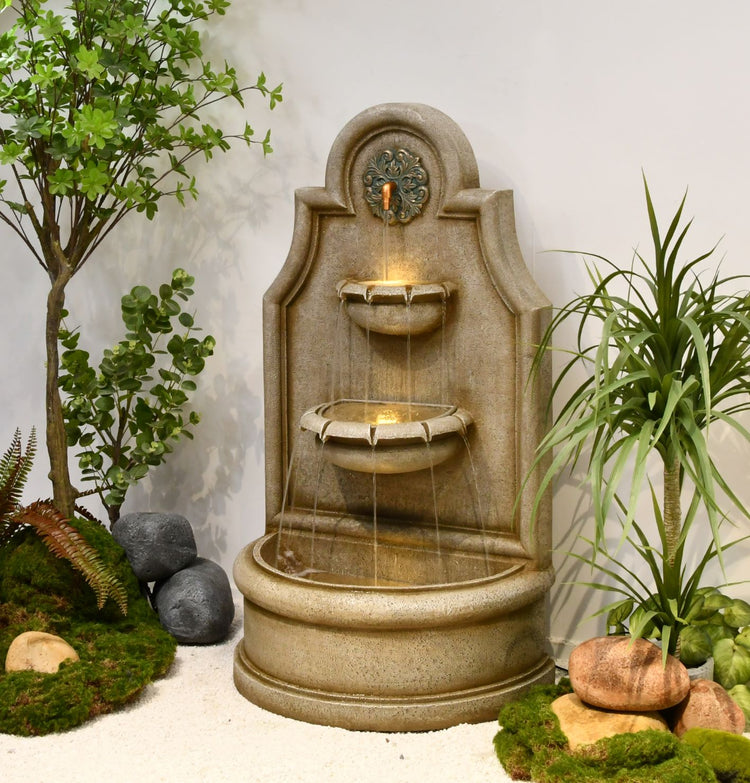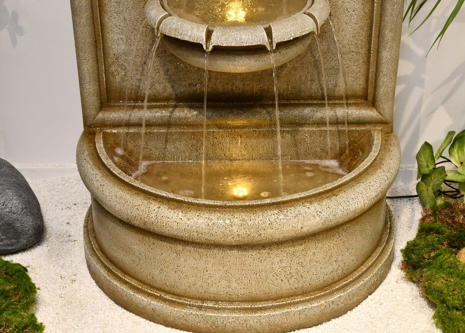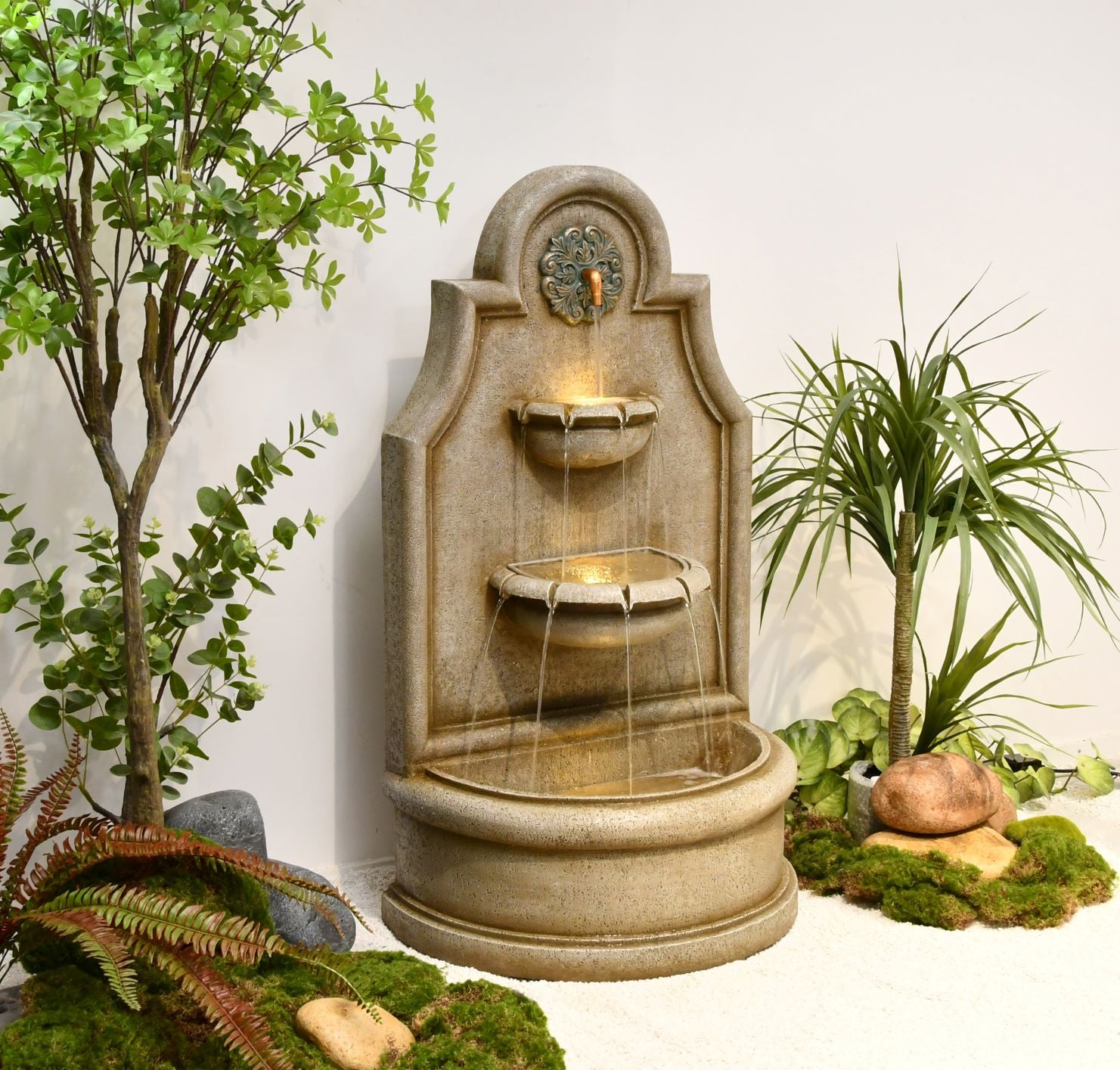 This Spanish Designed fountain couples an elegant, classical fountain design with a set of modern improvements and accessories to create a truly unique piece. Electric powered and self-contained, this fountain requires little maintenance. The product also comes with a set of LED lights to accentuate the beauty and class of the piece even at night.