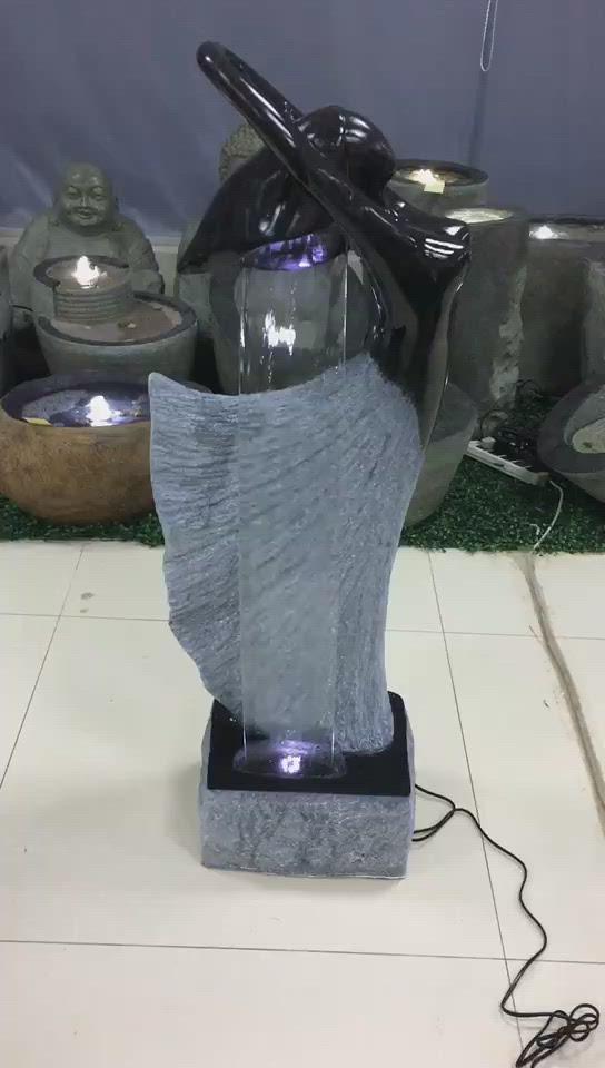 Made of Fiber with a unique glass feature for water slide. Size 115cm H, 43cm W, 28cm D