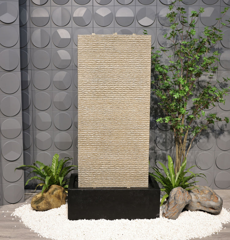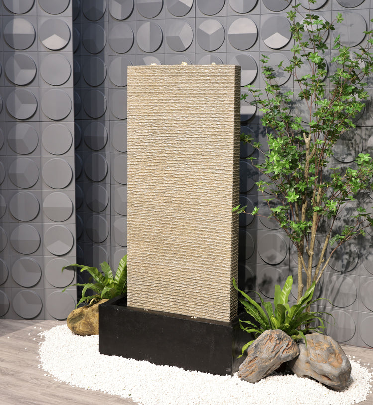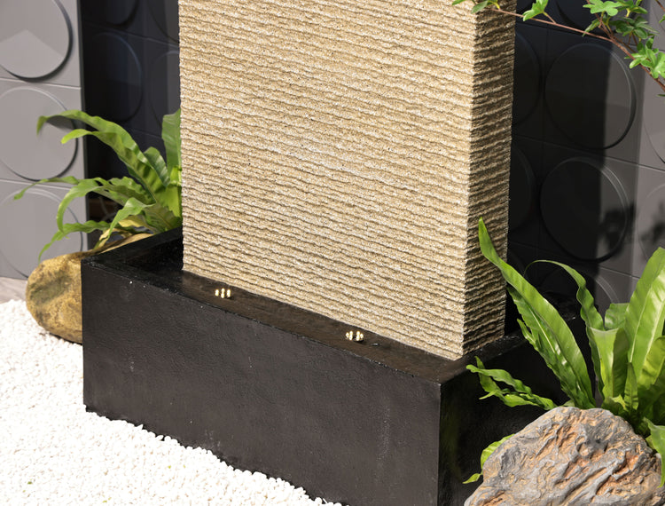 This off white water curtain is ideal for garden, walkways & against wall placements in large patios, gardens, driveways. This is an outdoor weather proof masterpiece that comes with 2 spots lights at the base, a strong water pump and a majestic water sounds.