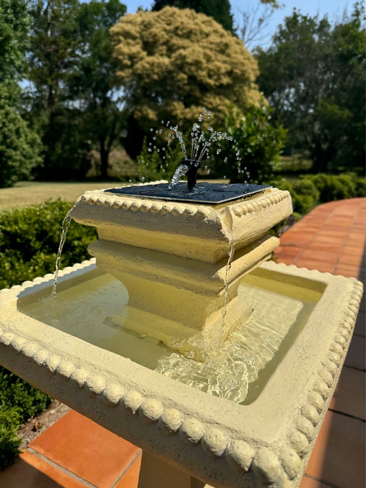 • Integrated battery backup - don't let lack of sun stop the fun, an integrated battery backup system will help keep the water feature powered