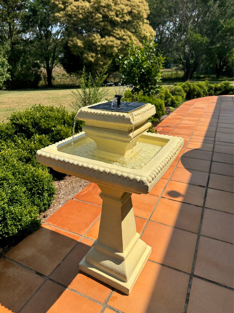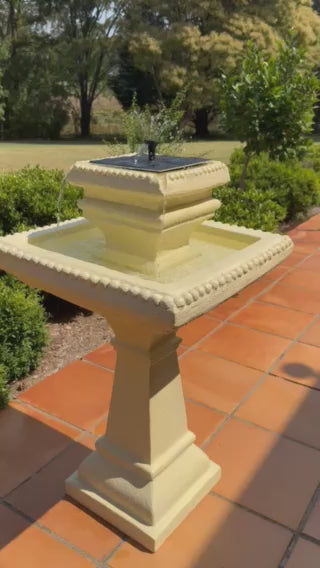 This birdbath resonates with Victorian elegance and charm. Built from high quality polyresin, this birdbath is sure become the centre of attention in your garden. This product is self-contained and solar powered, meaning you can position it anywhere in the garden, even paved or decked areas. Water can start from centre or from butterfly towards the centre of the bird bath.