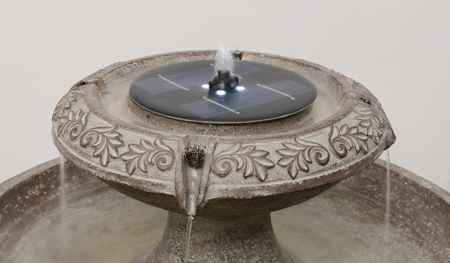 • Integrated battery backup - don't let lack of sun stop the fun, an integrated battery backup system will help keep the water feature powered