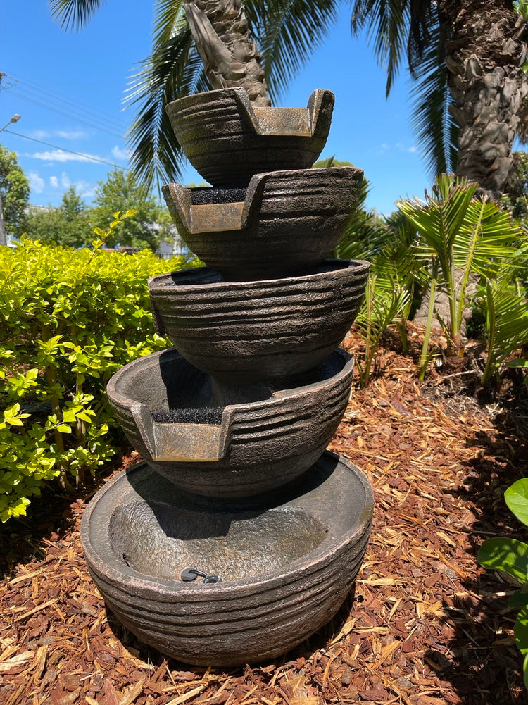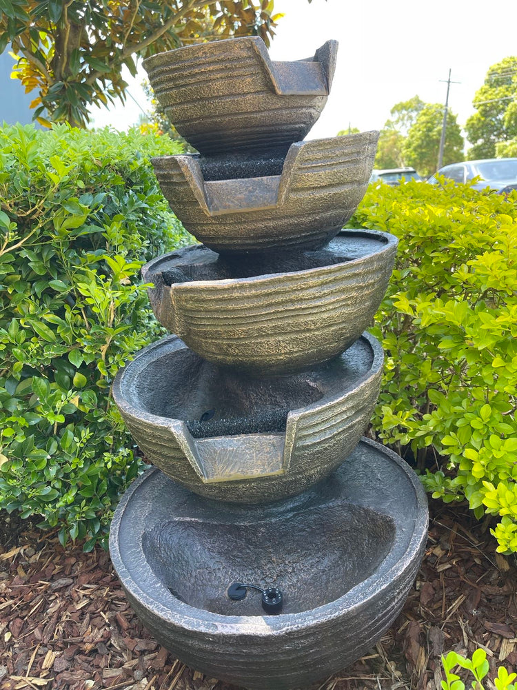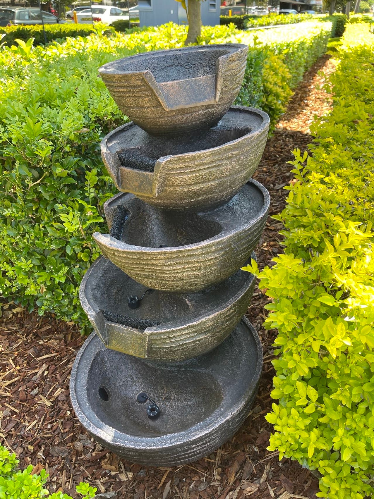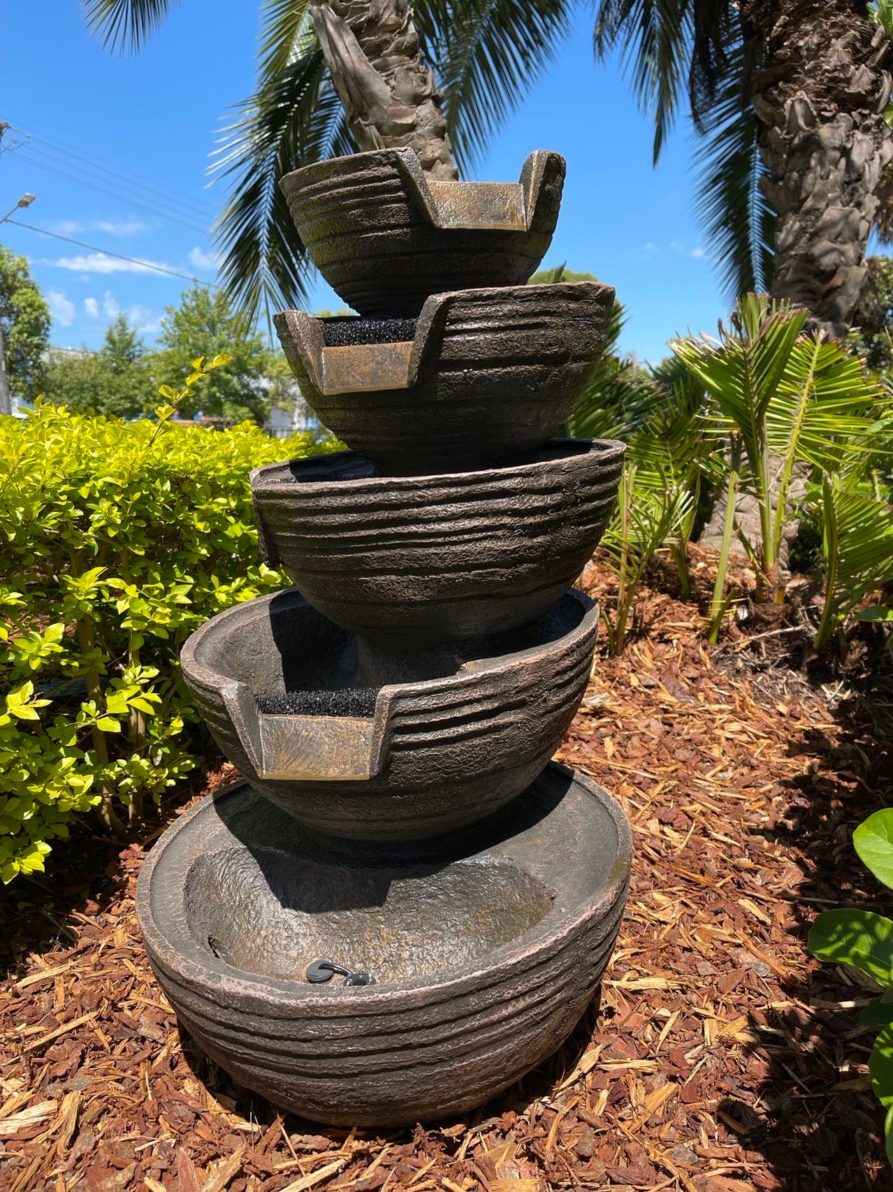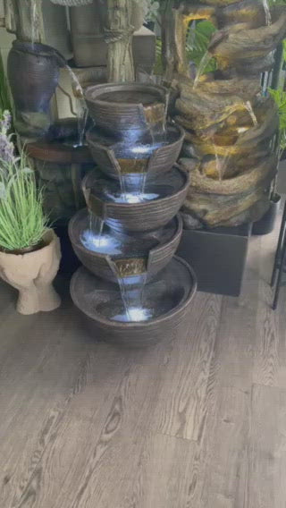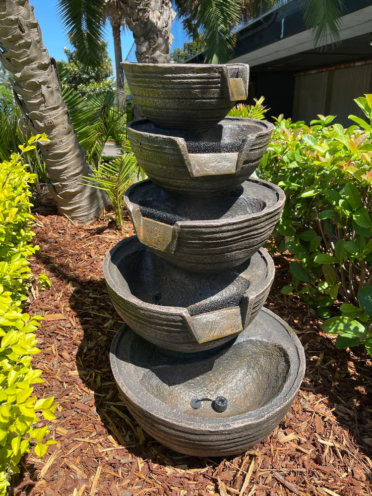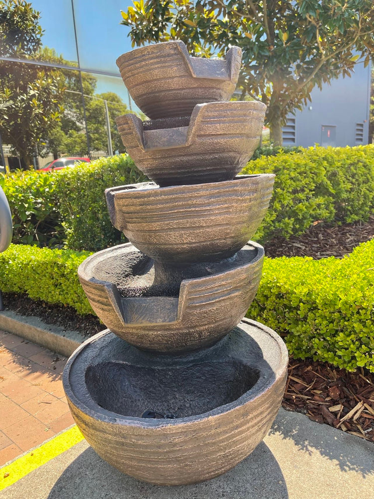 A plug & play concept, does not require plumbing or an electrician. This a free standing, self contained water feature that can be transported easily.