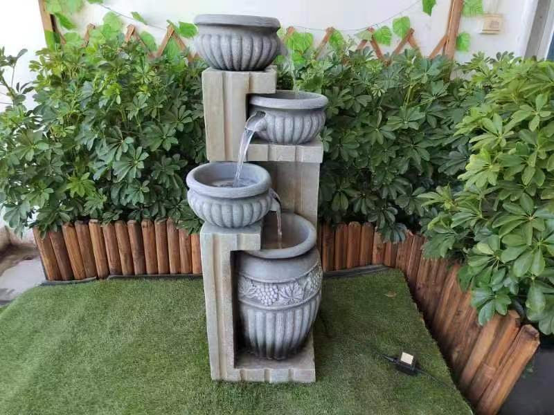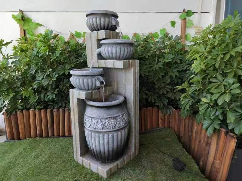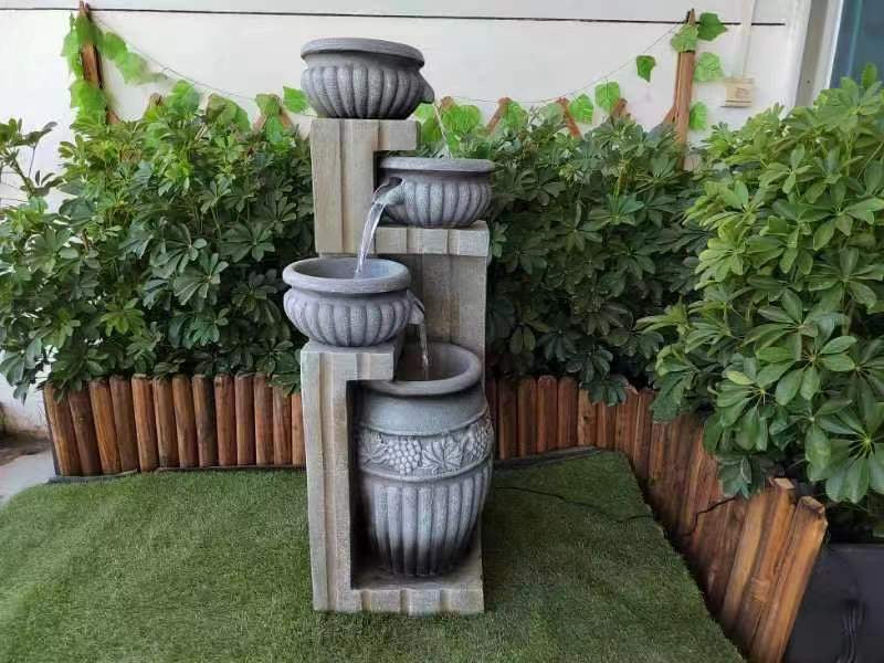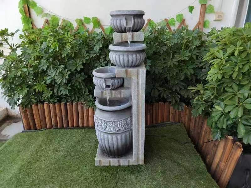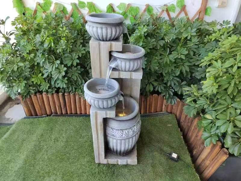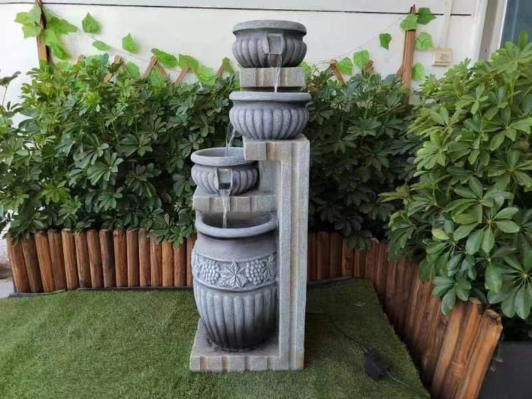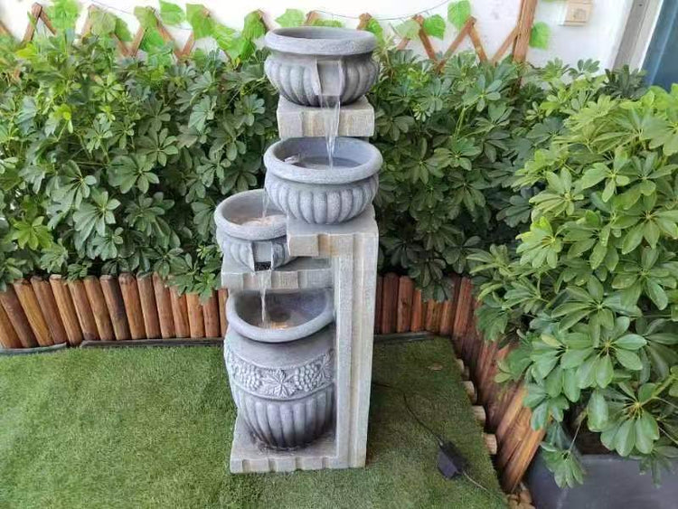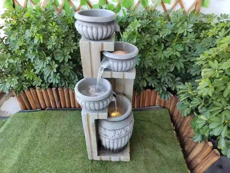 This is a premium designer quality fountain suitable for indoor & outdoor locations. The design combines traditional & contemporary concepts. This is truly an amazing water feature producing amazing visual effects with water & lights as well as genuine water sounds from the 4 levels and 3 drops.