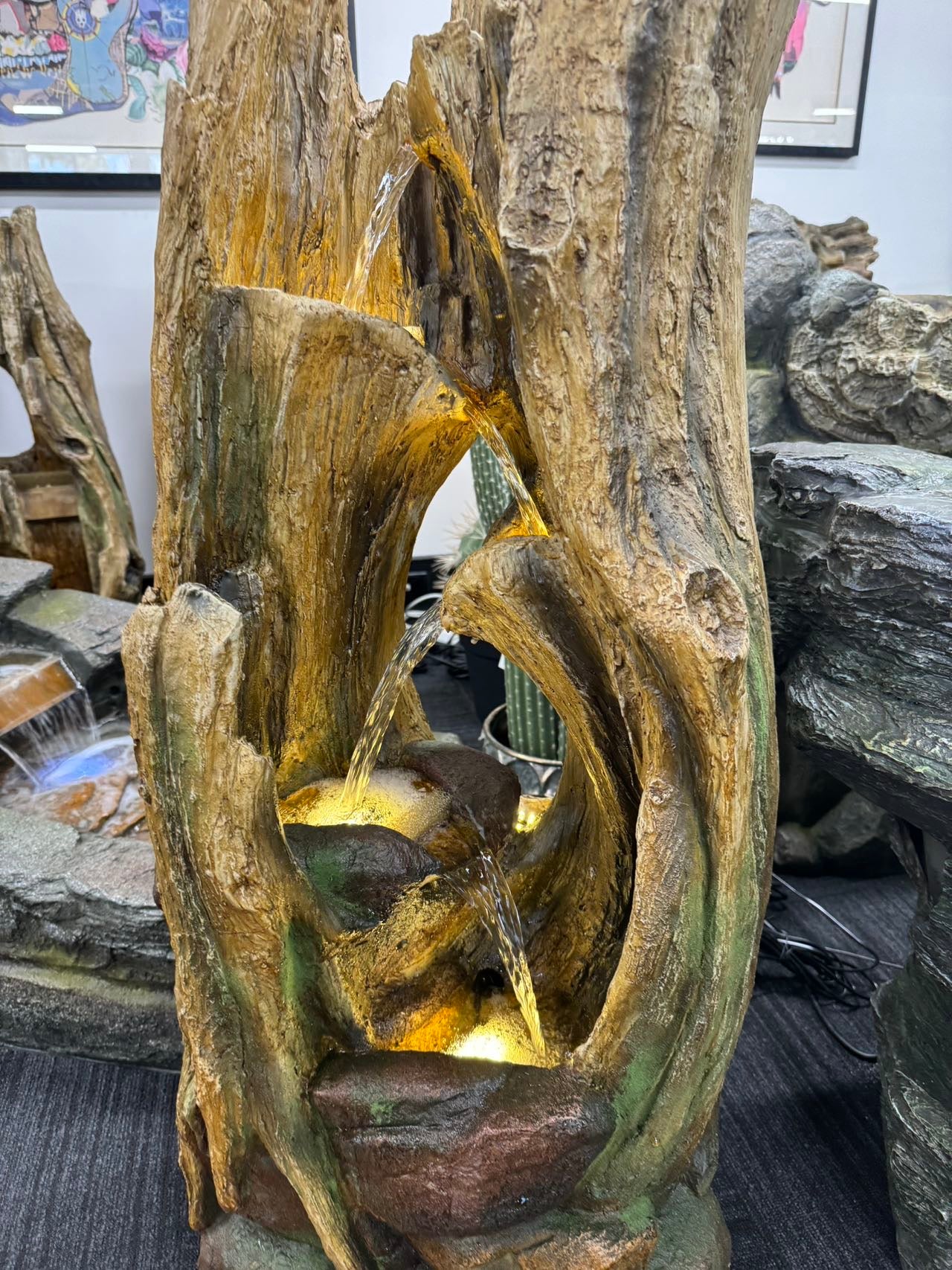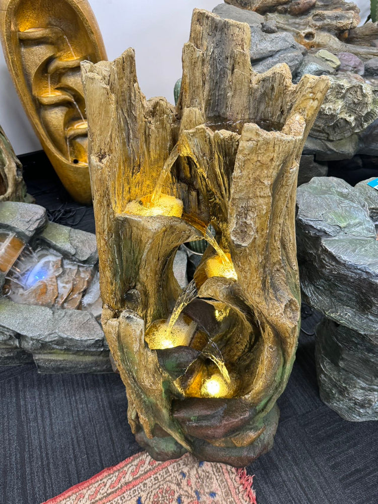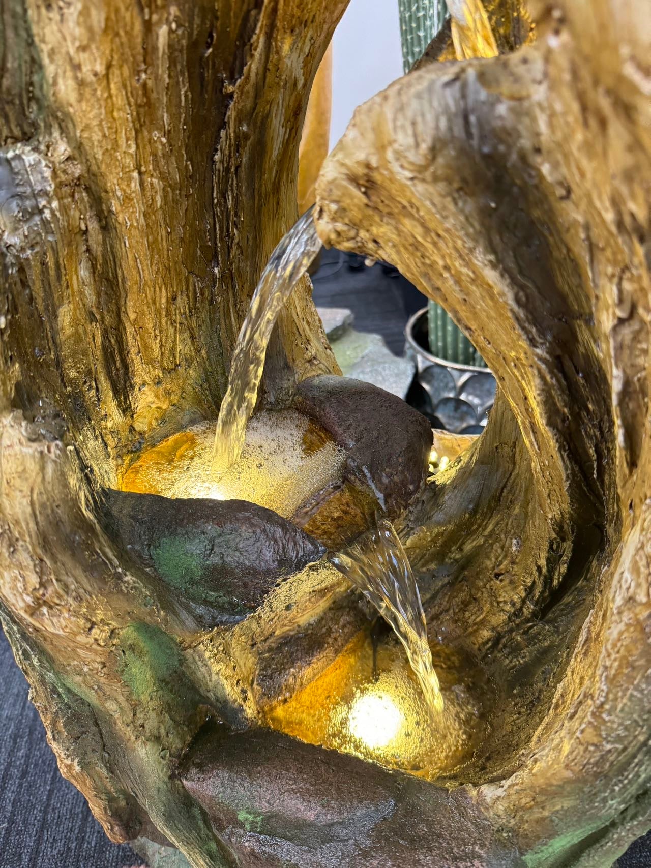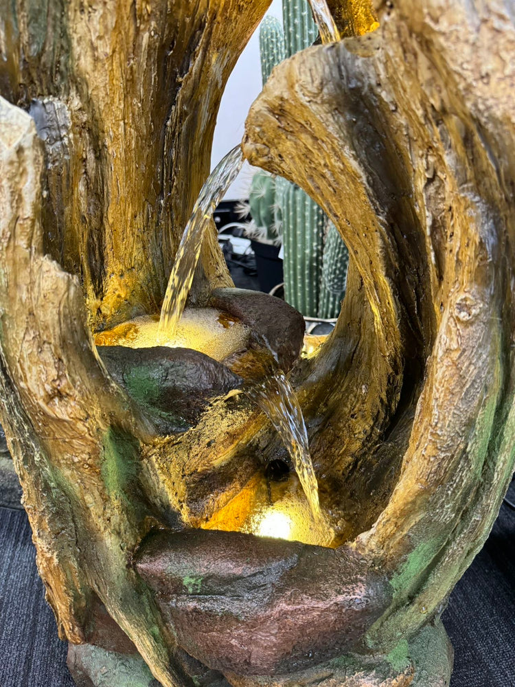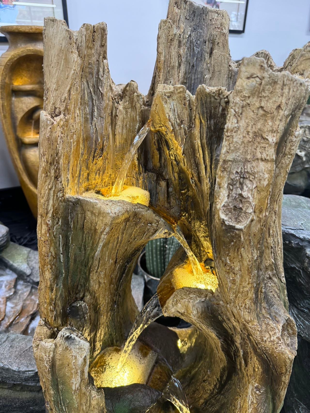 The organic looking Rock Wood finish of this water feature gives it a wild but charming appeal perfect for making any outdoor space feel more like a private oasis.