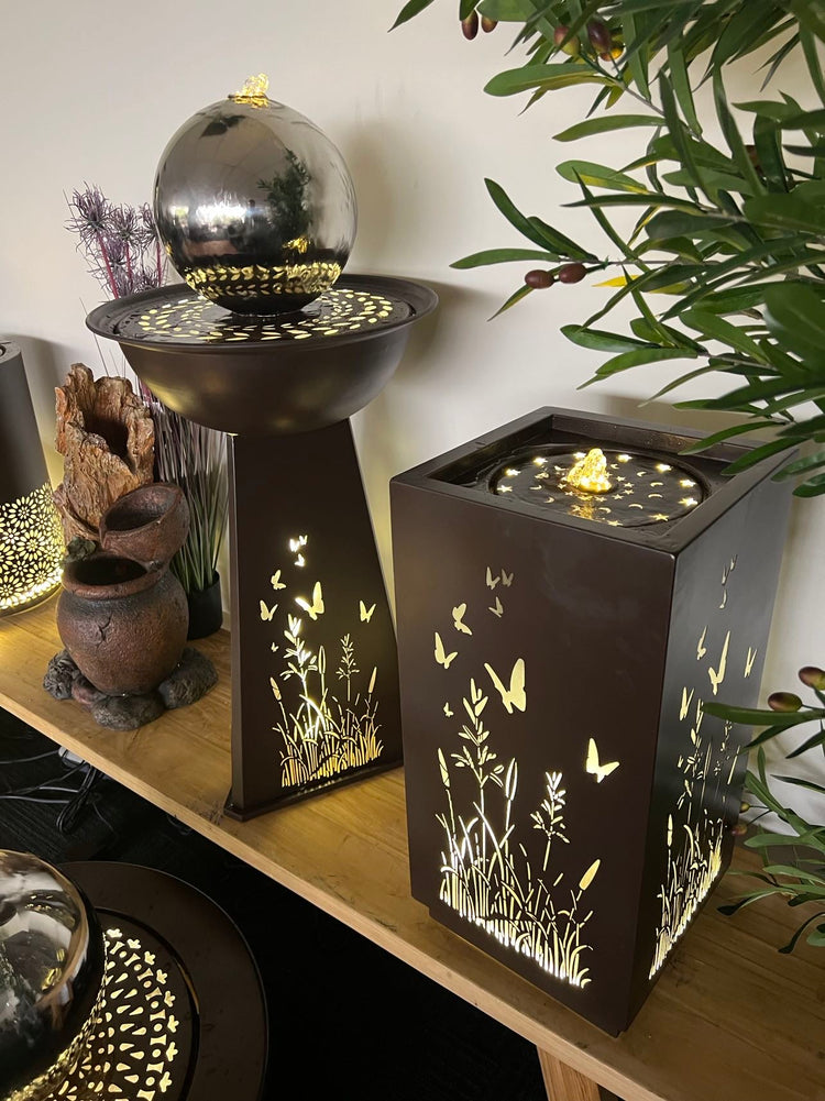 PAMPLONA is the part of our new Andalusian metal fountains, tranquil cascading water sounds with Amazing wall art shining light throughout.