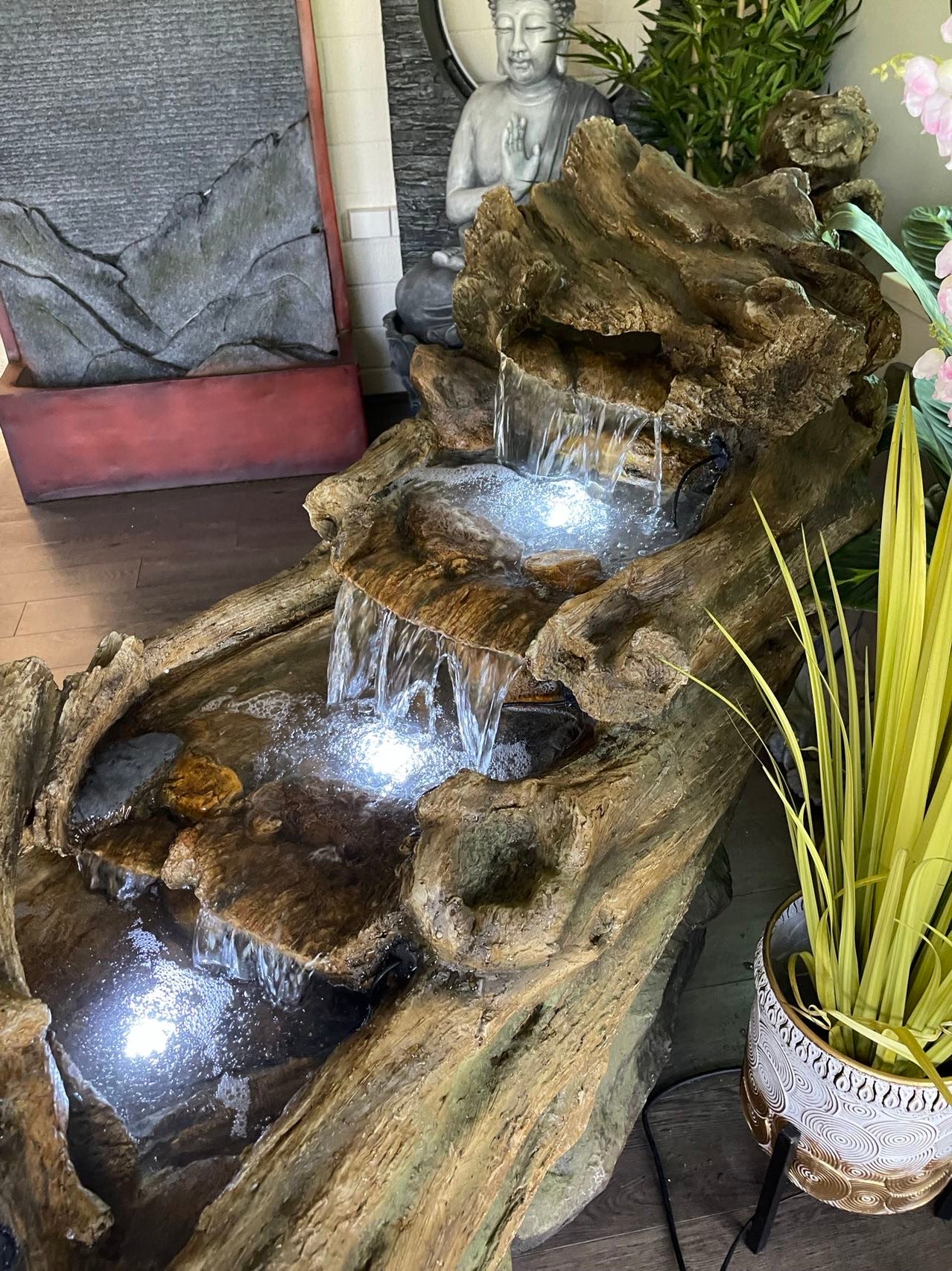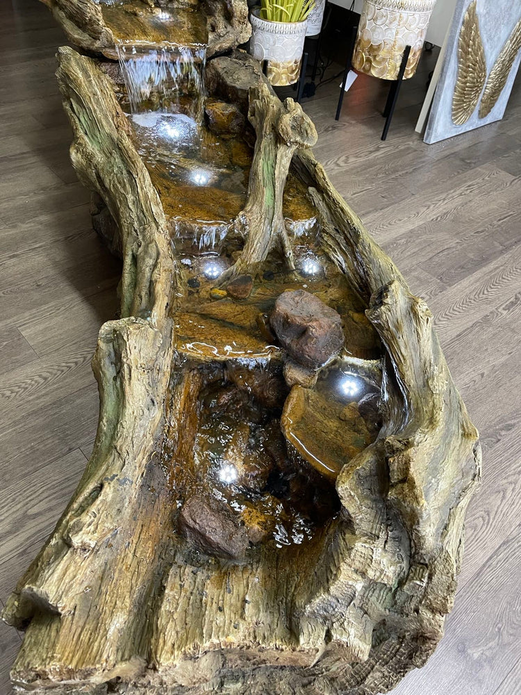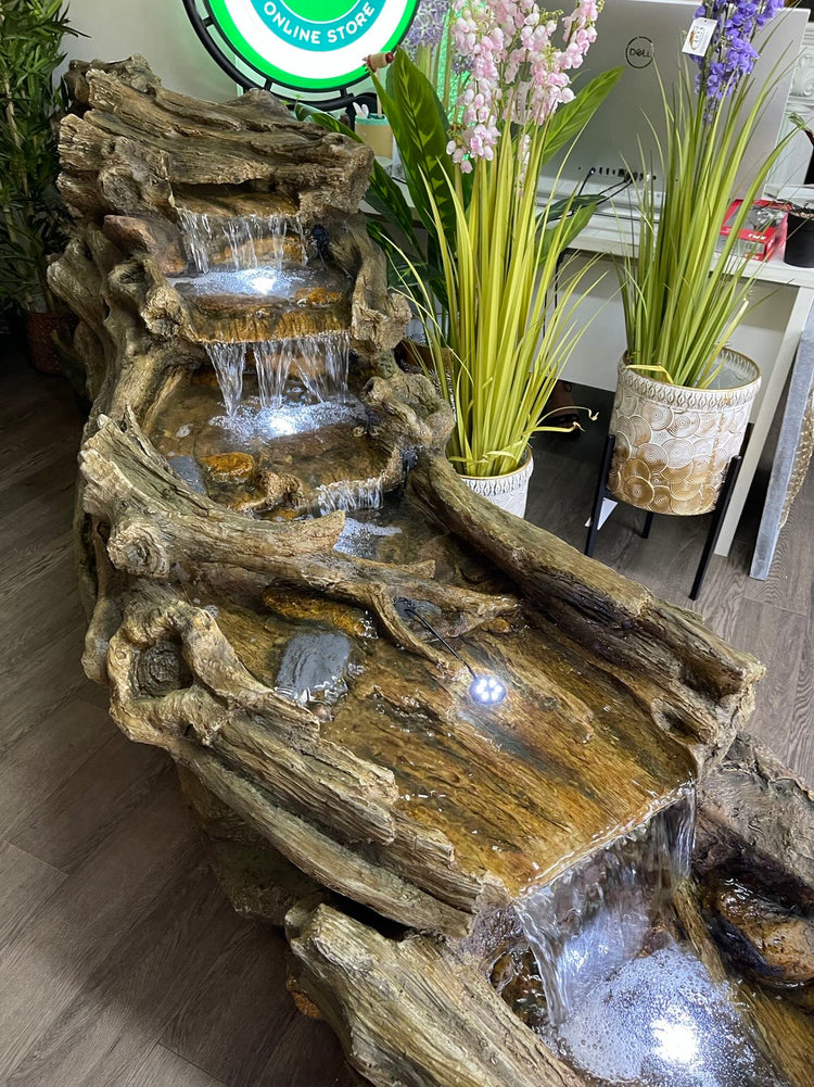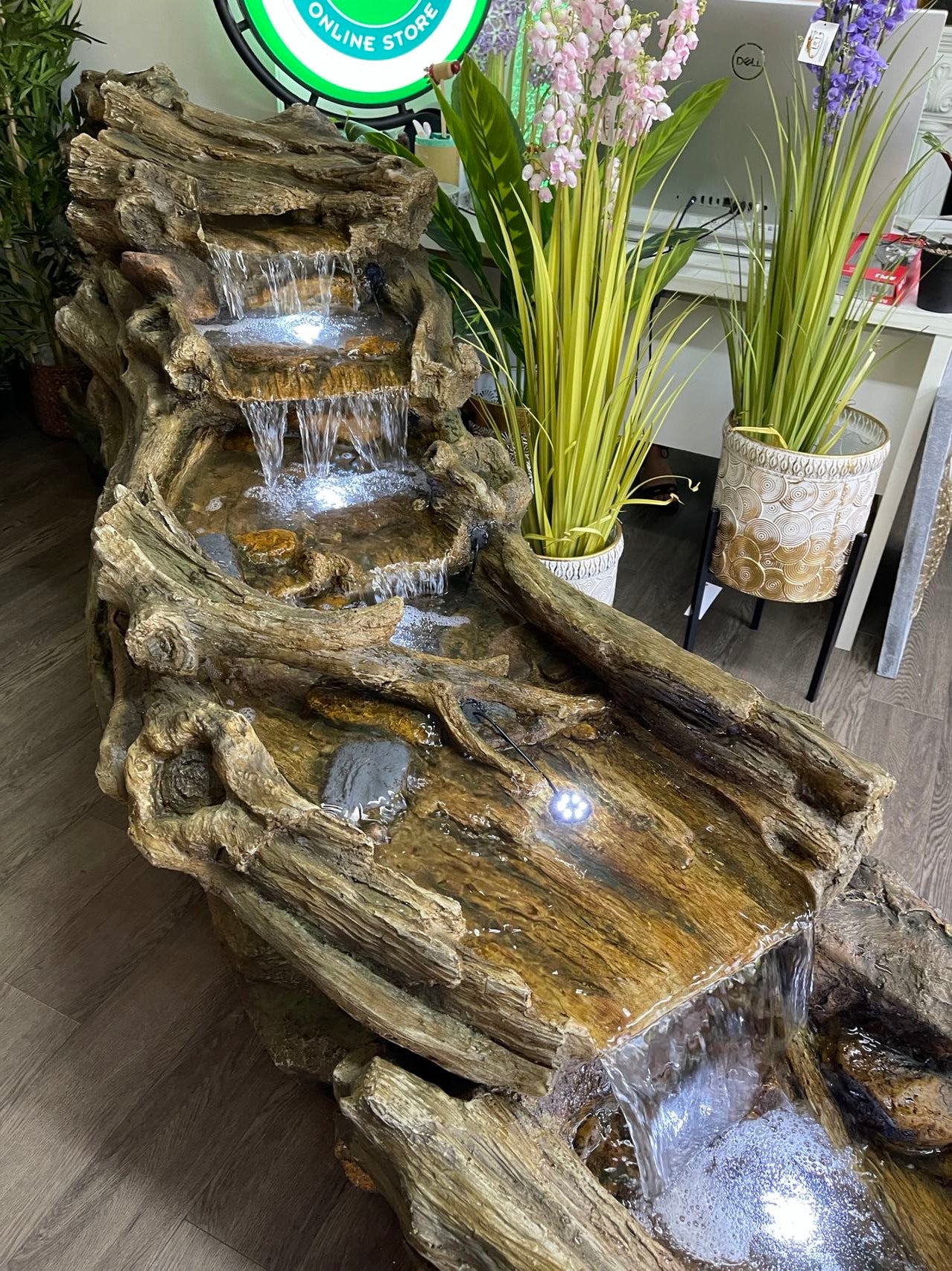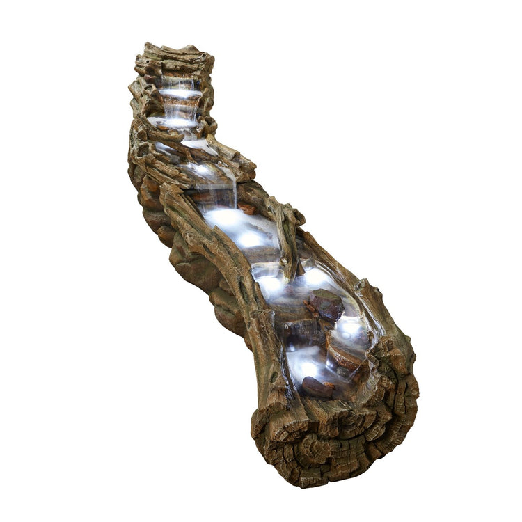 Transform your garden into a natural haven with our Natural range of water features. With low voltage, inbuilt LED lights this gorgeous water feature can be admired at any time of day or night. The organic looking Rock Wood finish of this water feature gives it a wild but charming appeal perfect for making any outdoor space feel more like a private oasis.