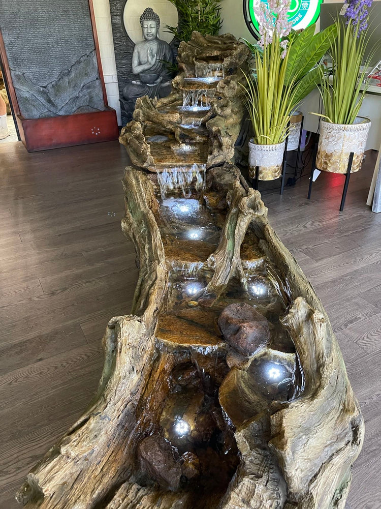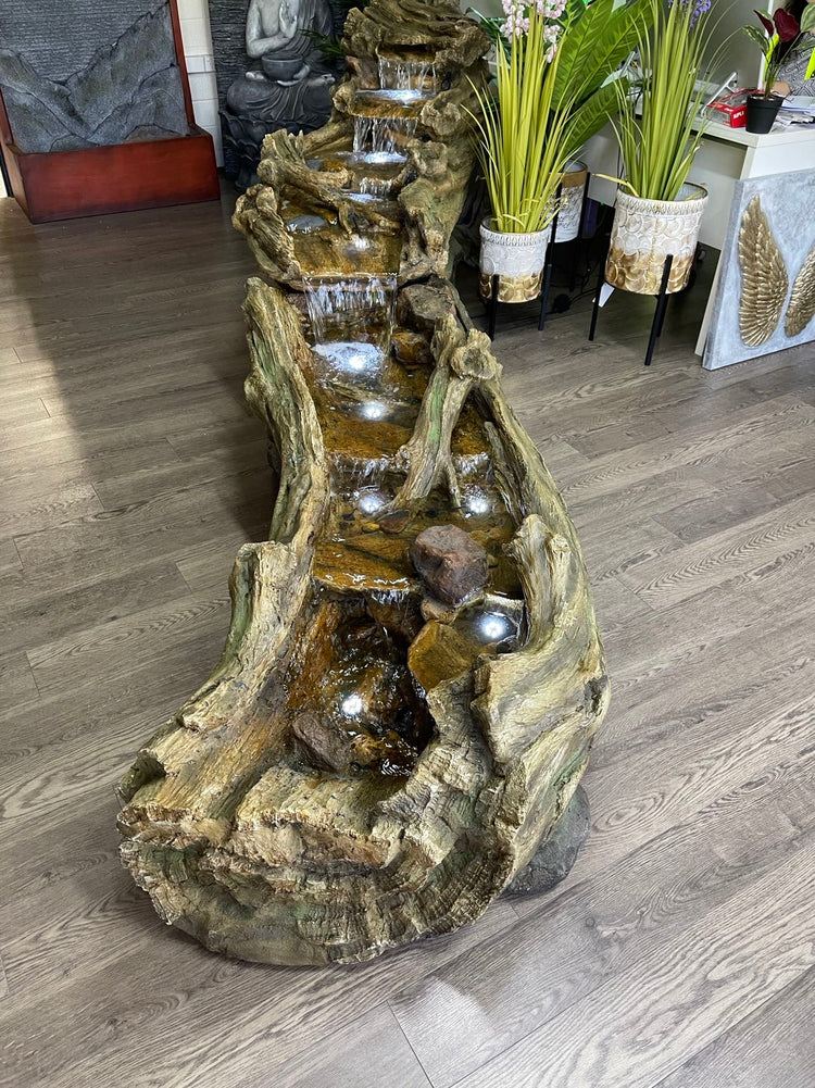 Whether babbling brook, dramatic waterfall or gentle cascade, our Water Courses offer a great range of natural looking, feeling and sounding water features to suit any outdoor space. With low voltage, inbuilt LED lights this gorgeous water feature can be admired at any time of day or night. The organic looking Rock Wood finish of this water feature gives it a wild but charming appeal— perfect for making any outdoor space feel more like a private oasis.