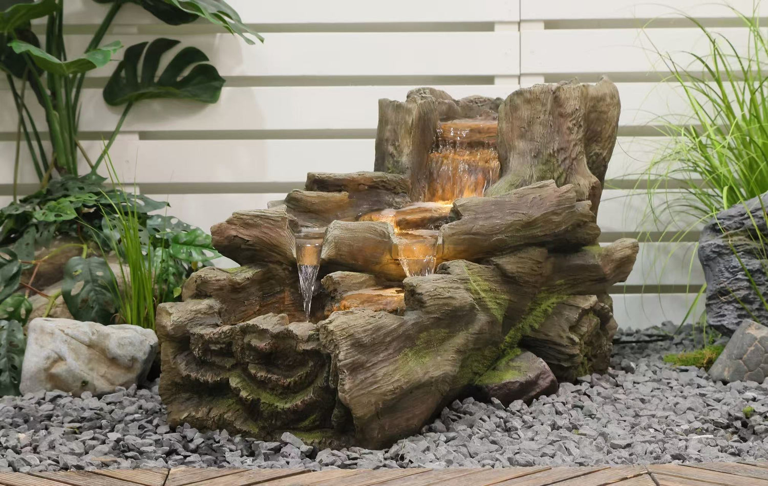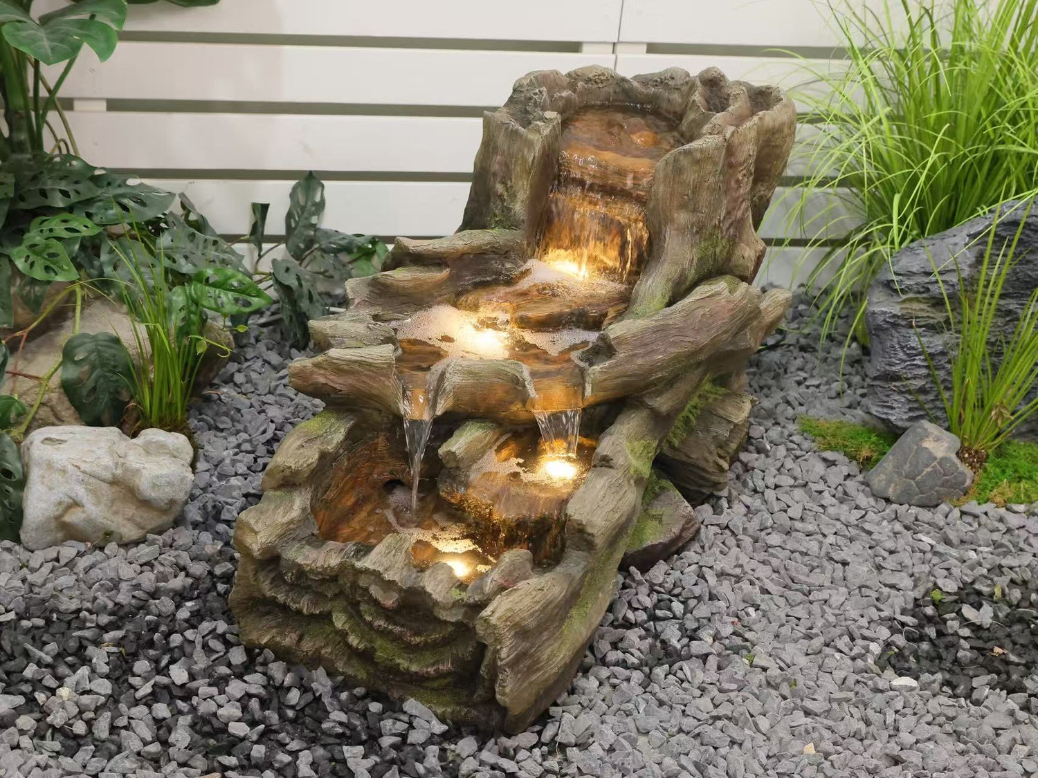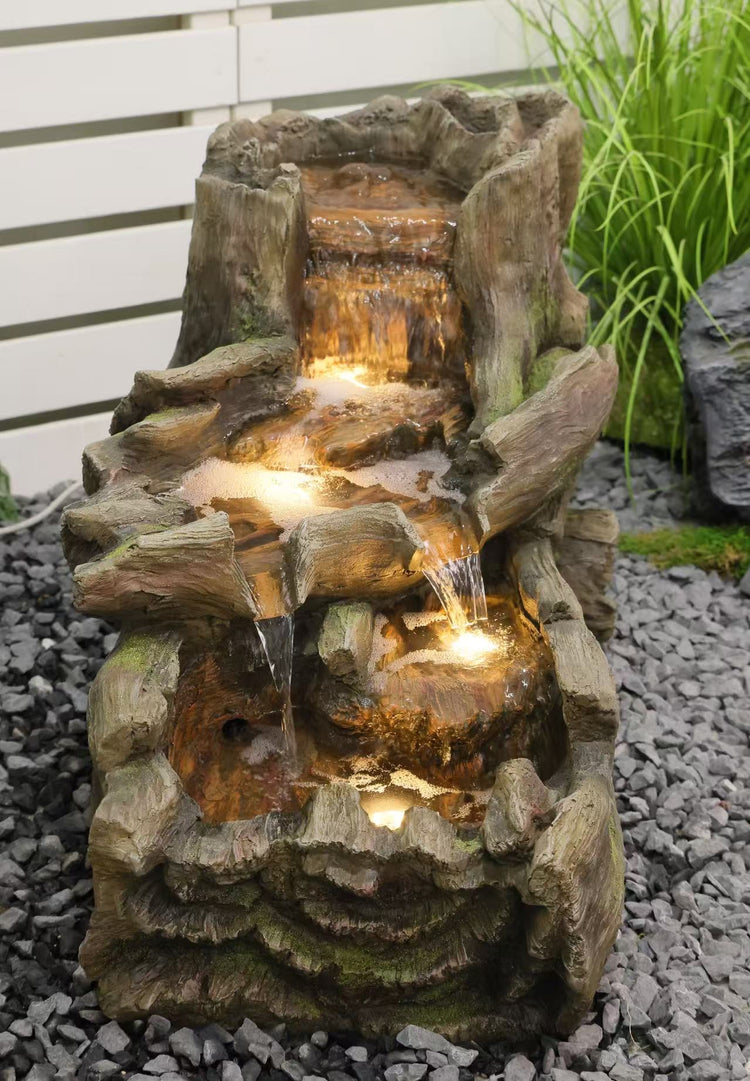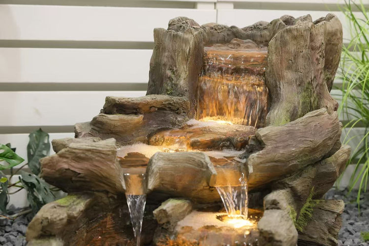 Transform your garden into a natural haven with our Natural range of water features. With low voltage, inbuilt LED lights this gorgeous water feature can be admired at any time of day or night. The organic looking Rock Wood finish of this water feature gives it a wild but charming appeal perfect for making any outdoor space feel more like a private oasis.