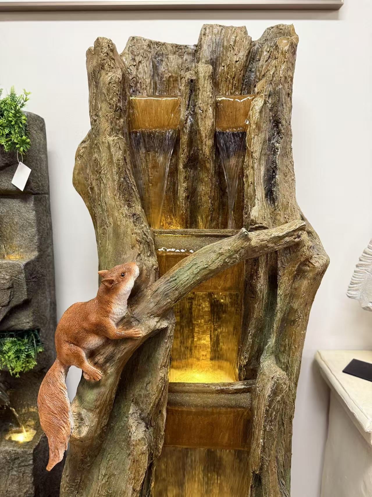 Ebor Tree Trunk Extra Tall Fountain Great Sound and Lights on each level Squirrel