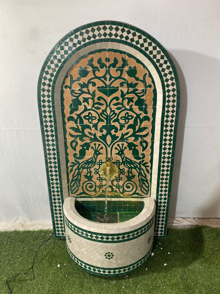 Emerald Green Mosaic Water Fountain for outdoor and indoor - Tree of Life Fountain water Feature - Garden Moroccan Mosaic Fountain Modern