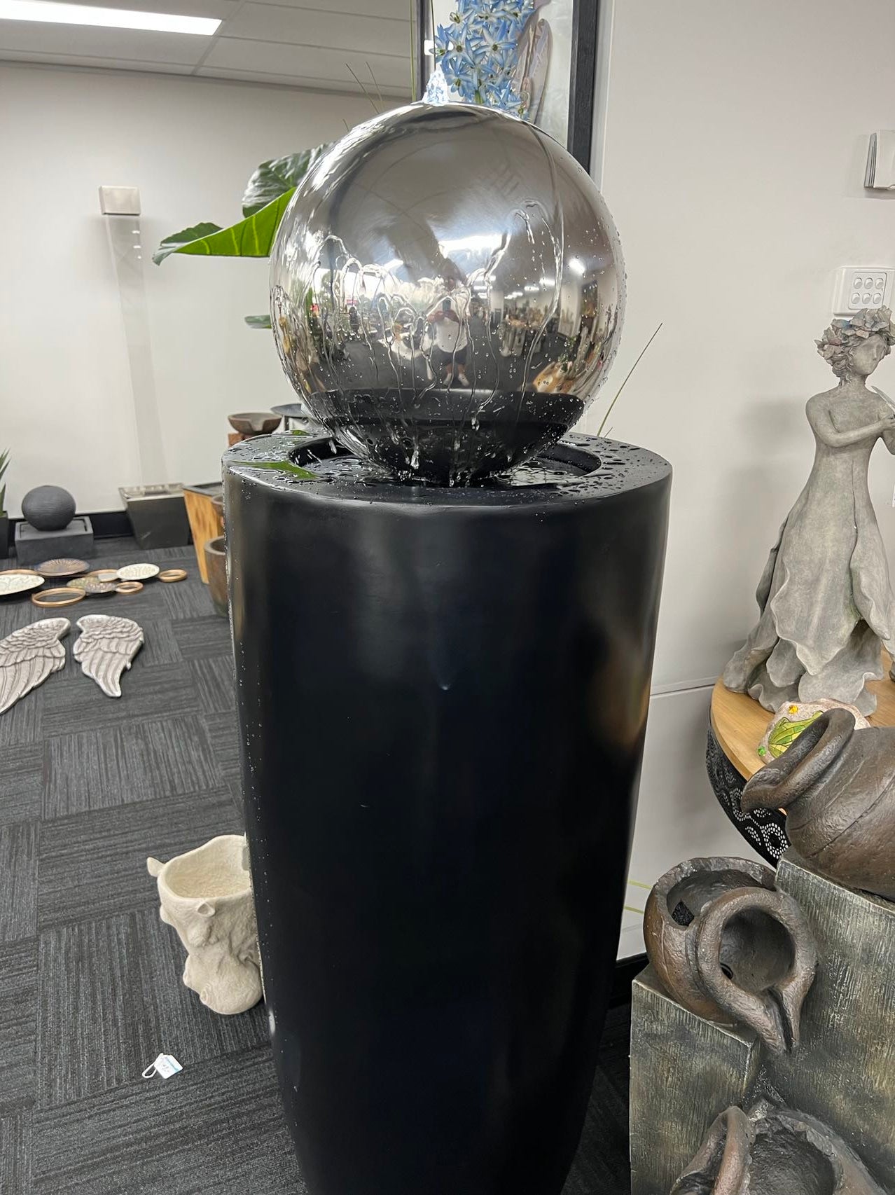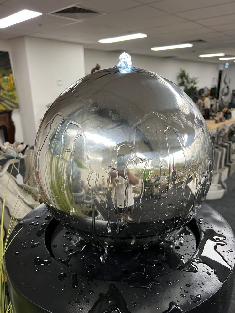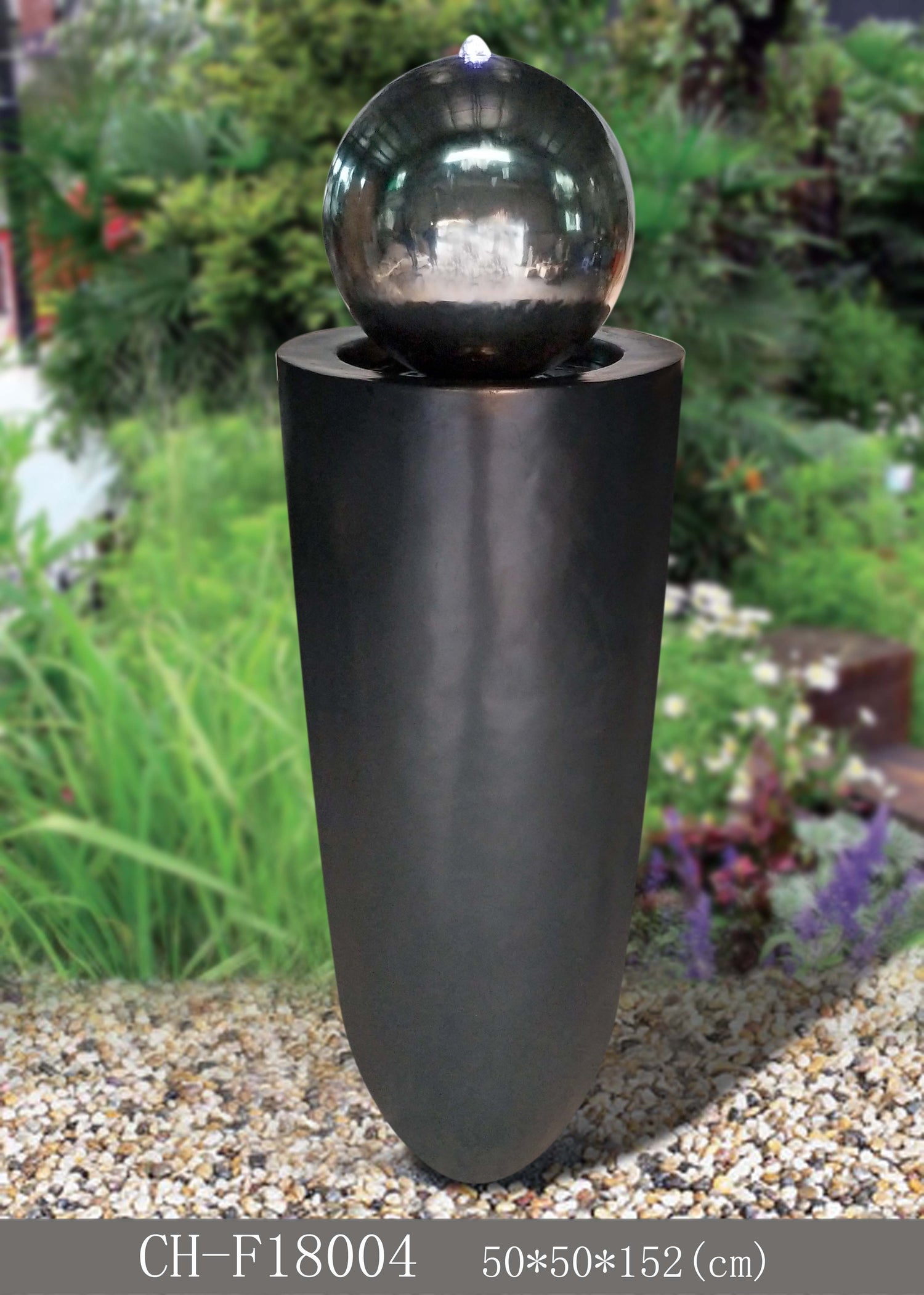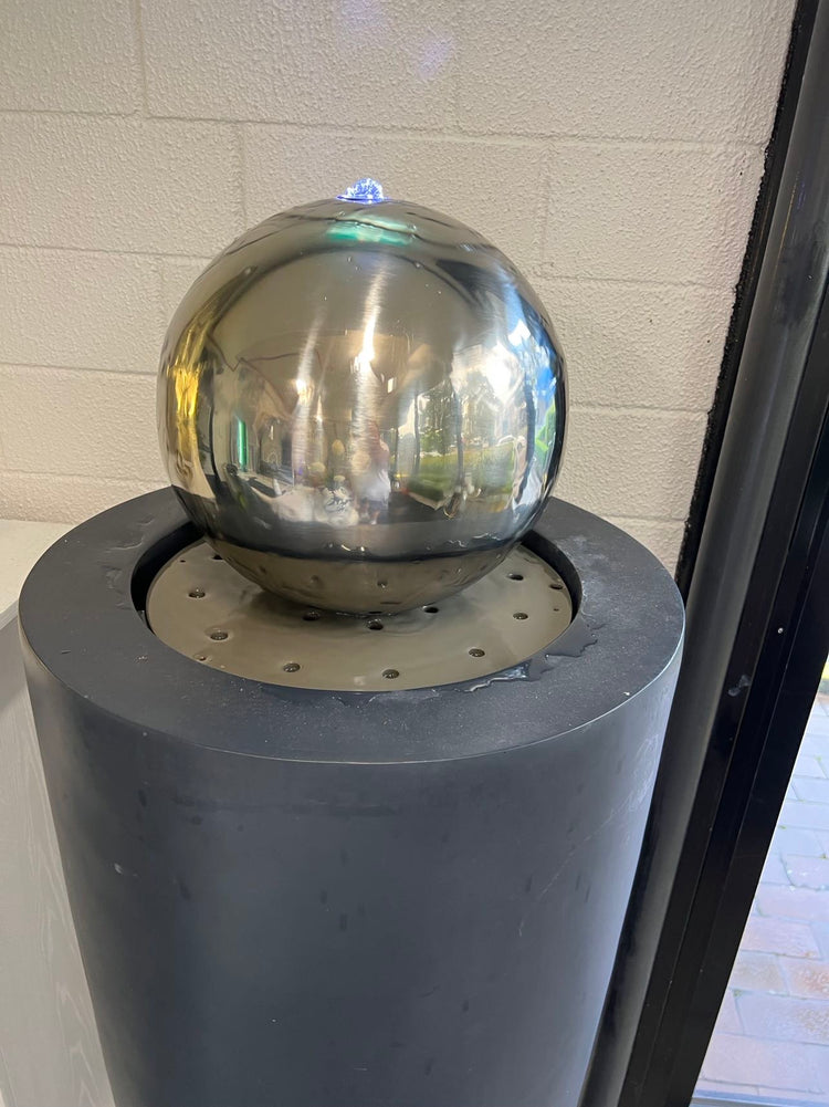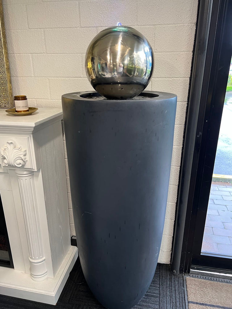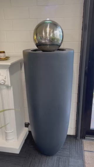 Entrada Tall Outdoor Fountain with Stainless Steel Ball Top & Lights