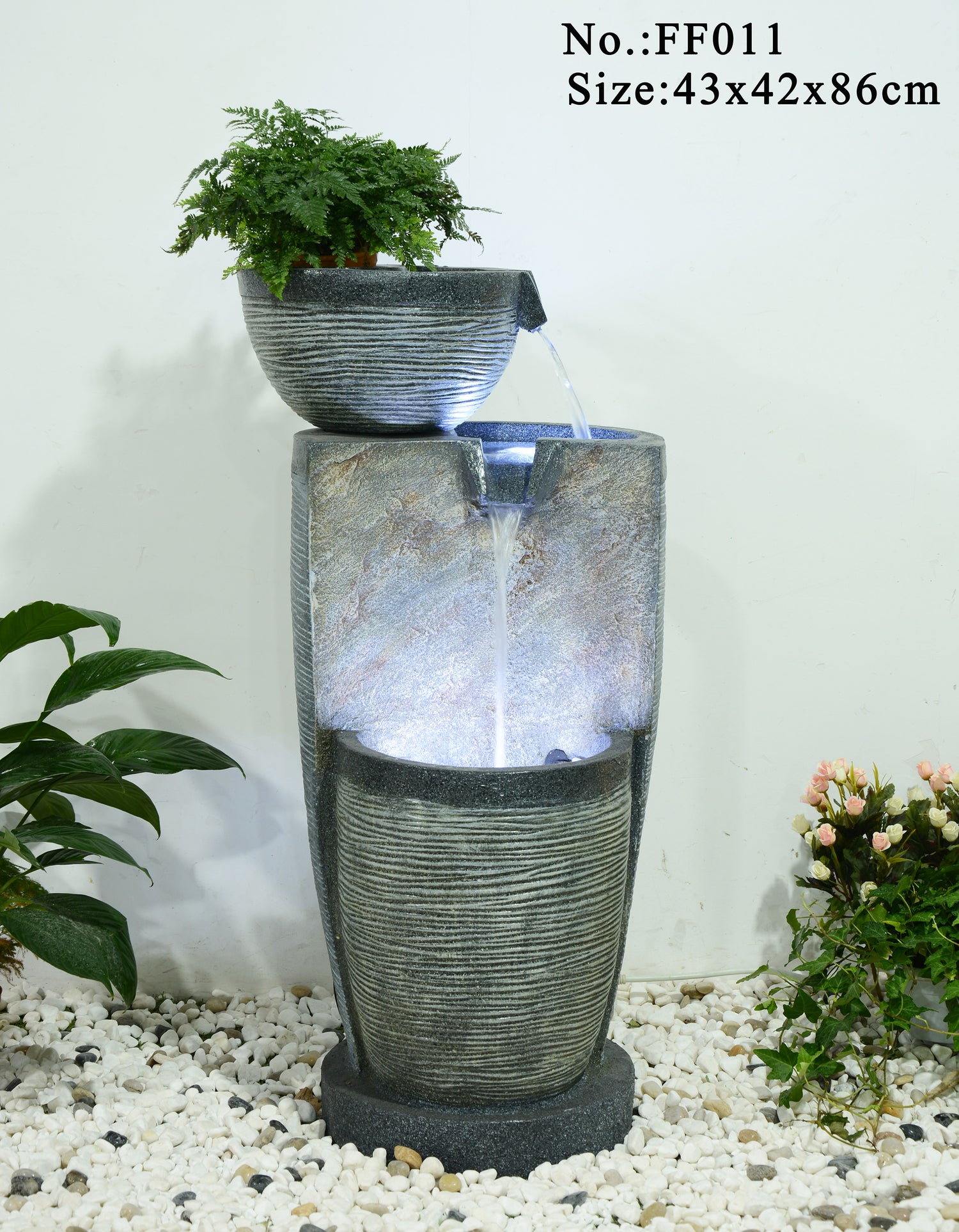 A plug & play concept, does not require plumbing or an electrician. This a free standing, self contained water feature that can be transported easily.