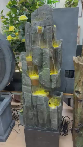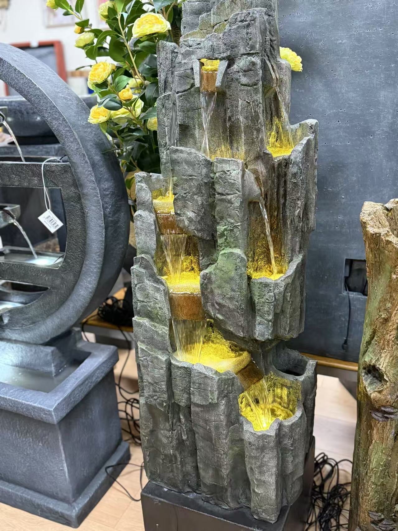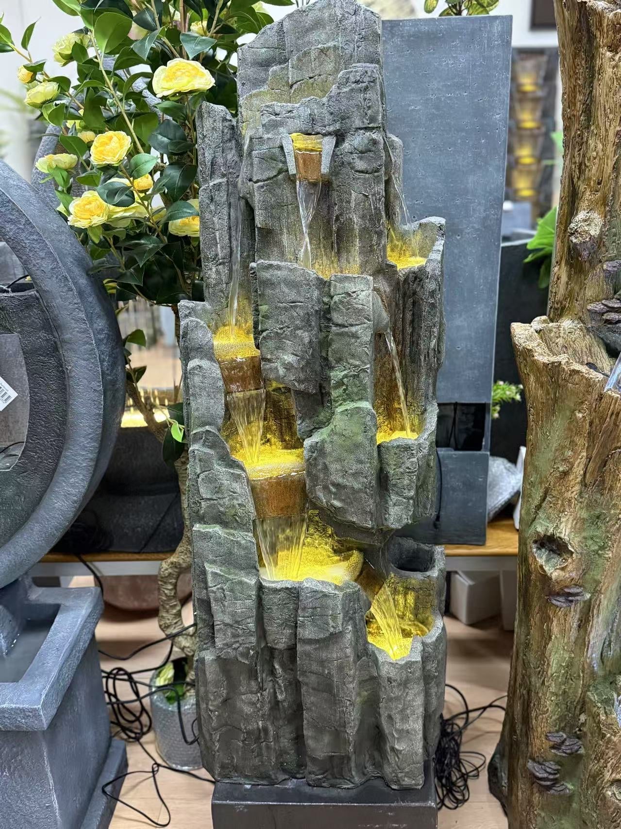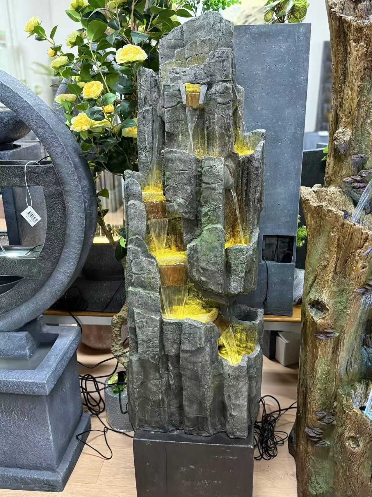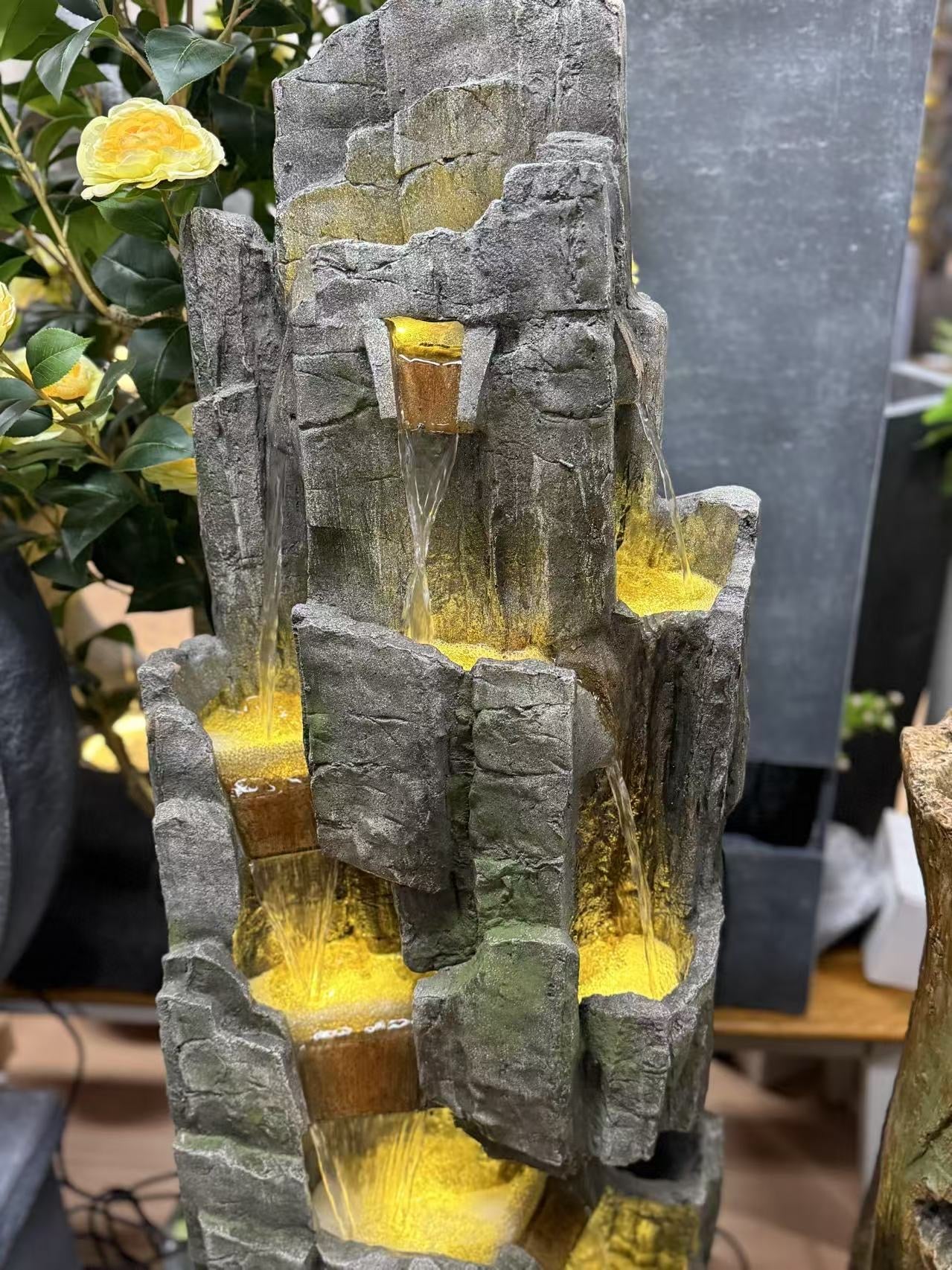 Firestone Rock Fountain Great Sound and Lights on each level Caves Effect
