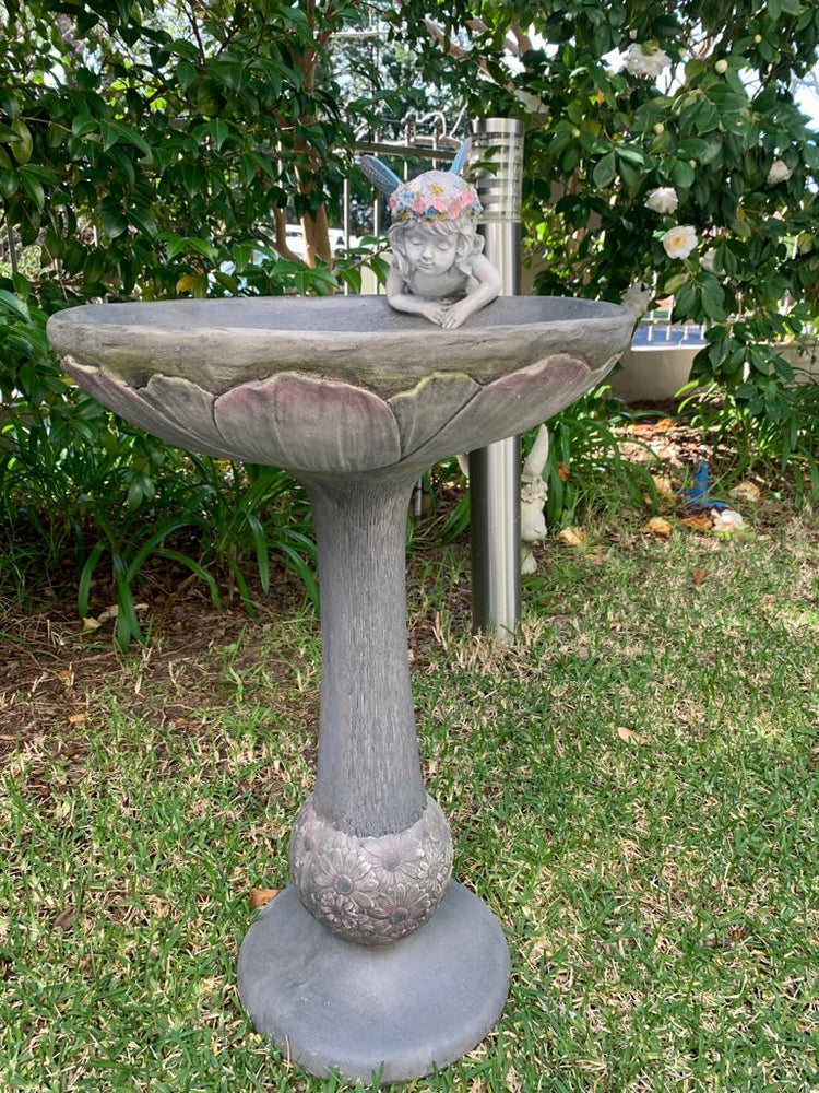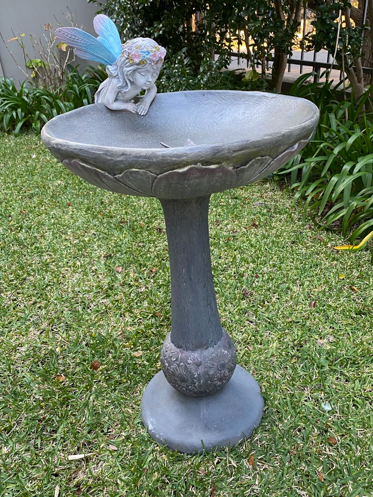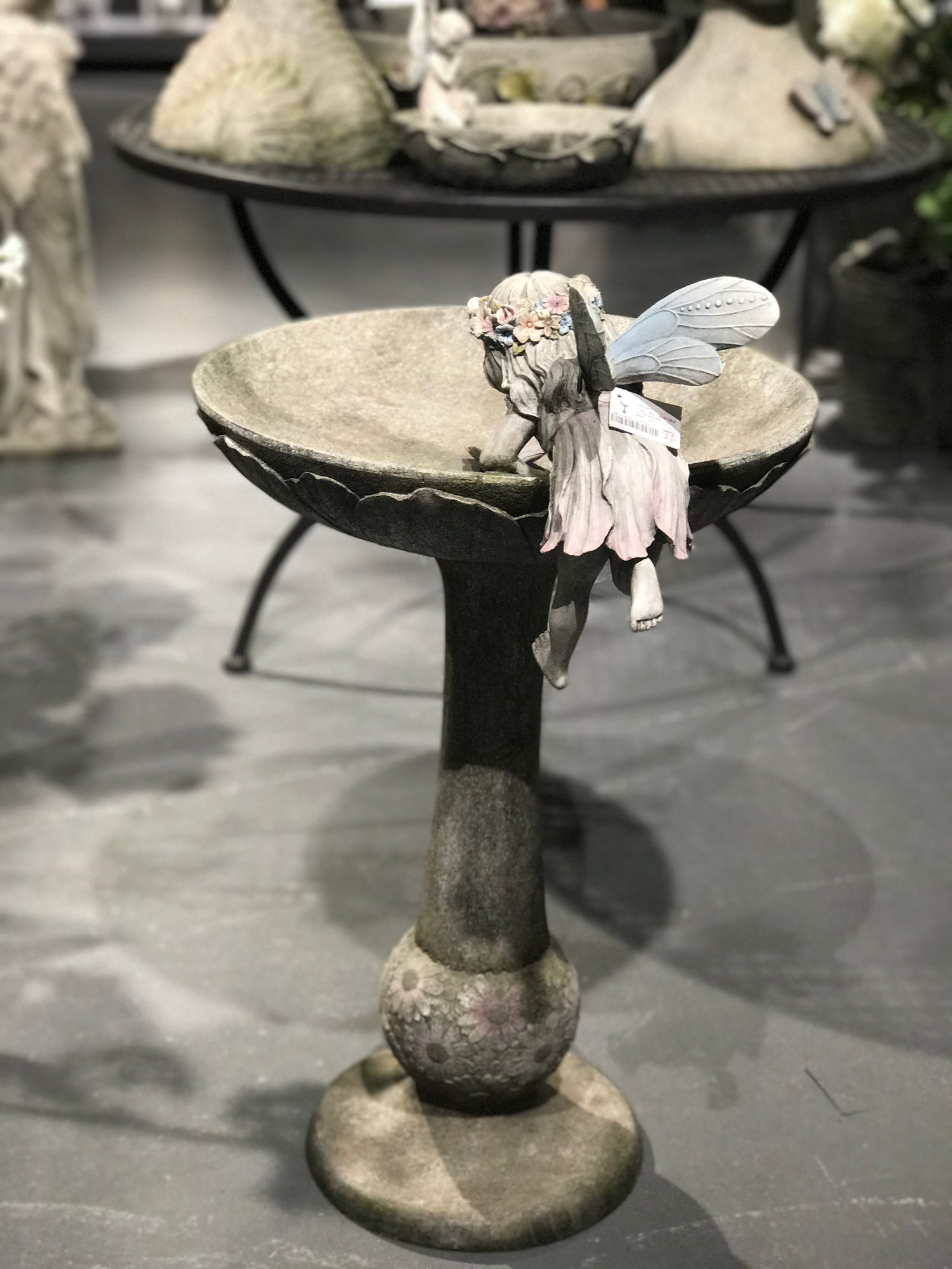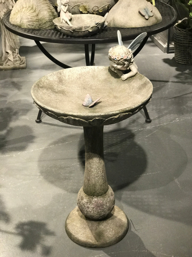Magic bird bath featuring a stunning fairy chasing a butterfly.