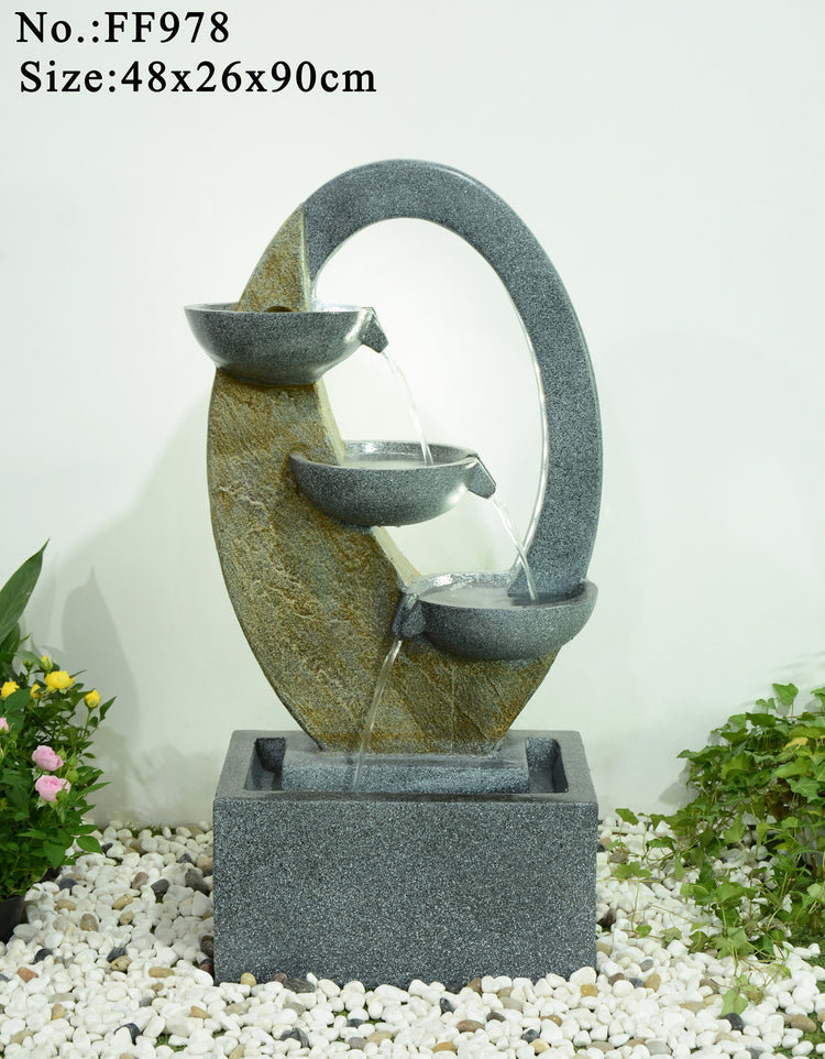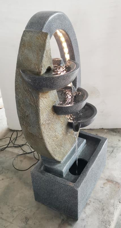 A plug & play concept, does not require plumbing or an electrician. This a free standing, self contained water feature that can be transported easily.