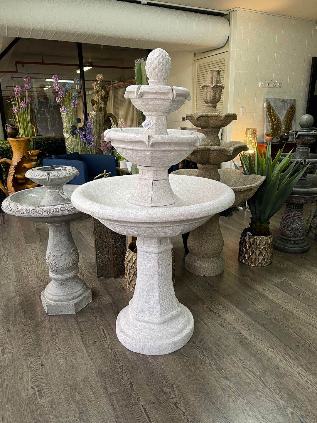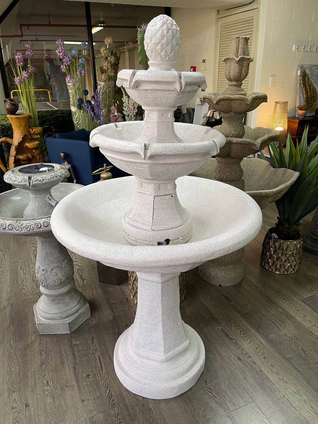 A plug & play concept, does not require plumbing or an electrician. This a free standing, self contained water feature that can be transported easily.