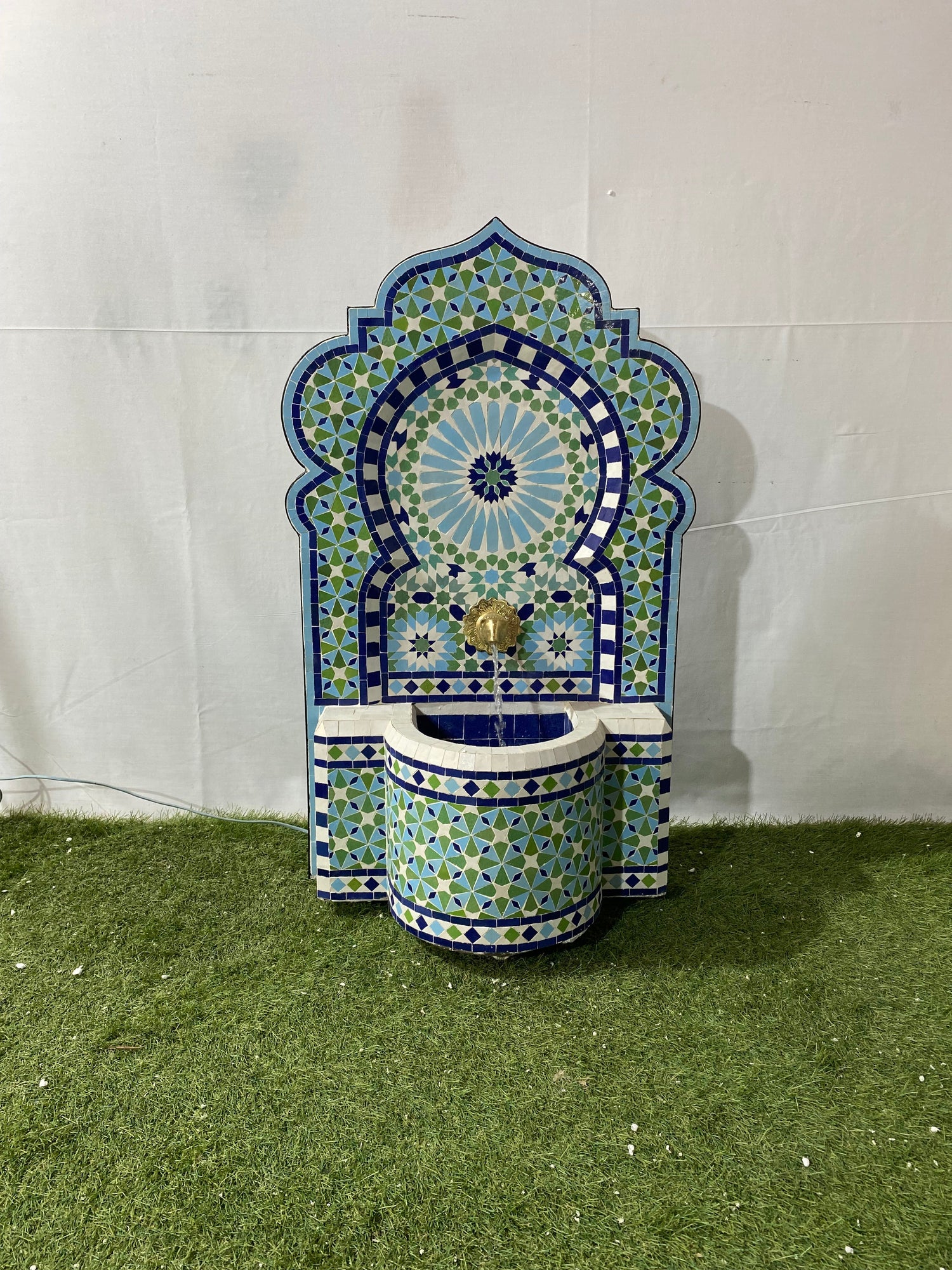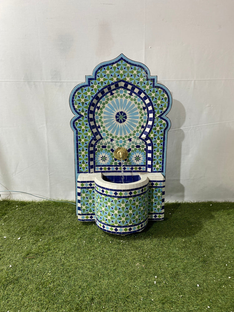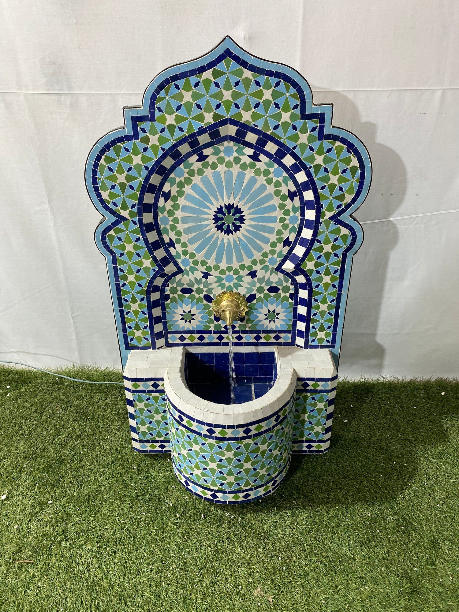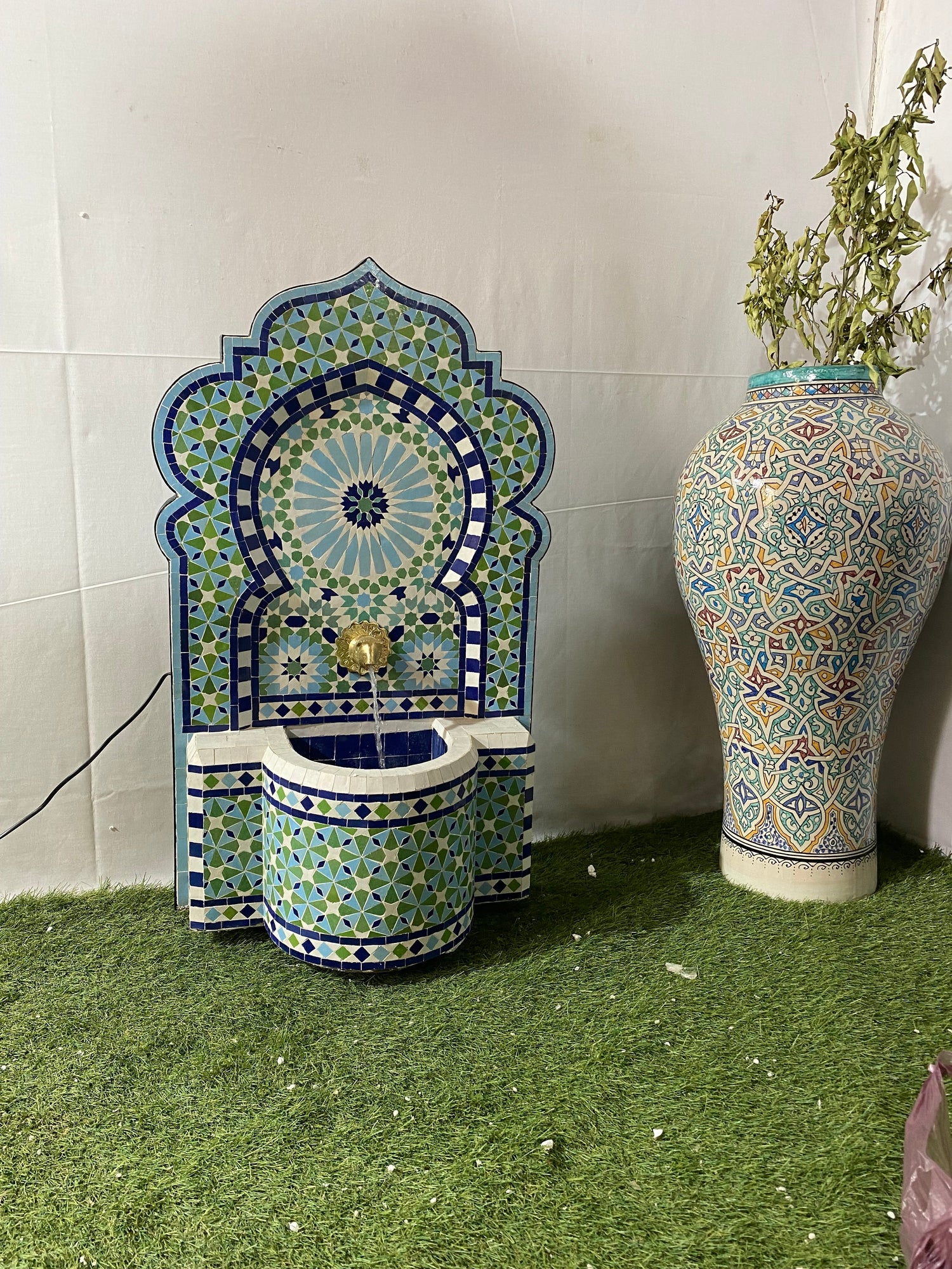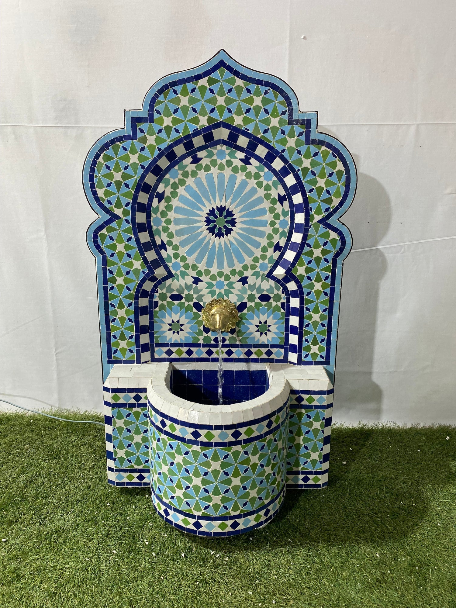 Mosaic Fountain for Outdoor and Indoor, Mid Century Fountain water inside, Garden Moroccan Mosaic Fountain