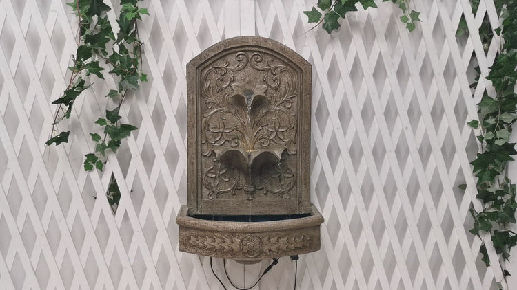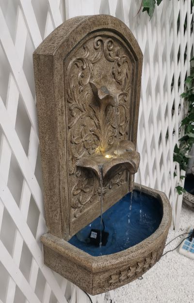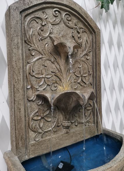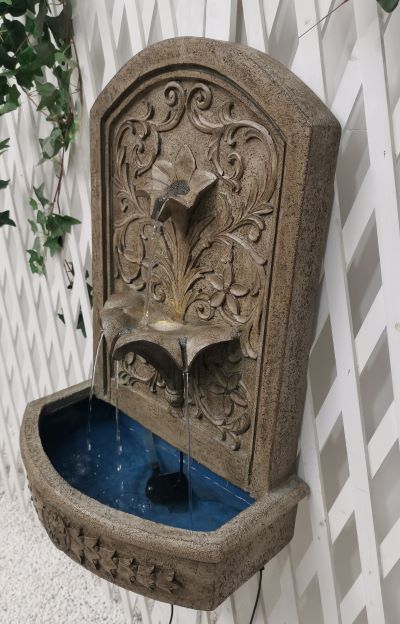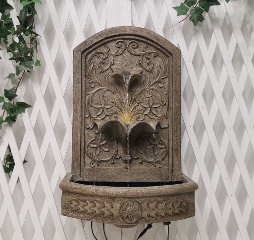 Napoli is a beautifully detailed wall fountain with leaves motif will be a lovely addition to your garden. It will be a wonderful focal point wherever you decide to place it. The water recirculates and gently pours out from the upper petal down into the lower levels before reaching reservoir at the bottom, creating a calm and relaxing atmosphere guaranteed to enliven your special space.