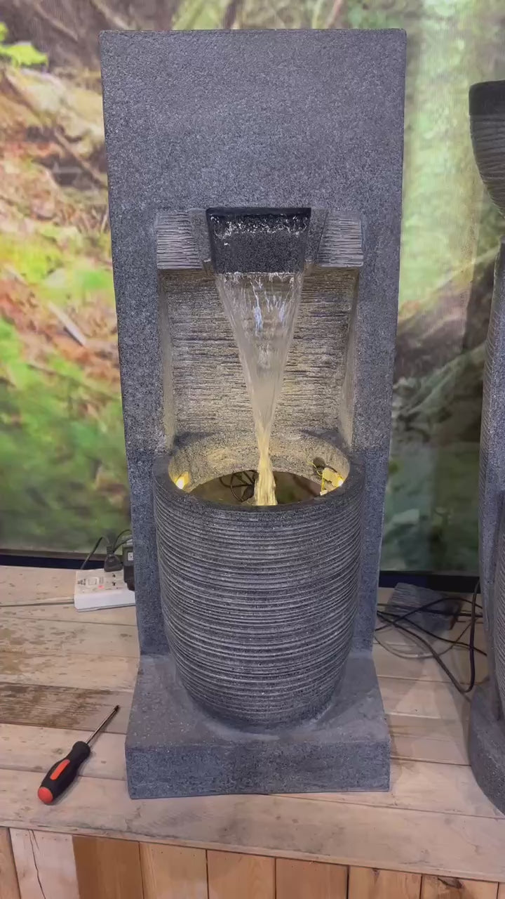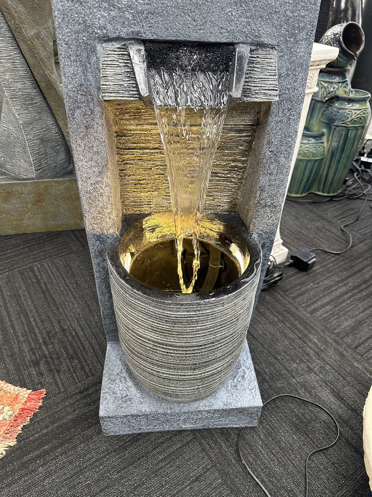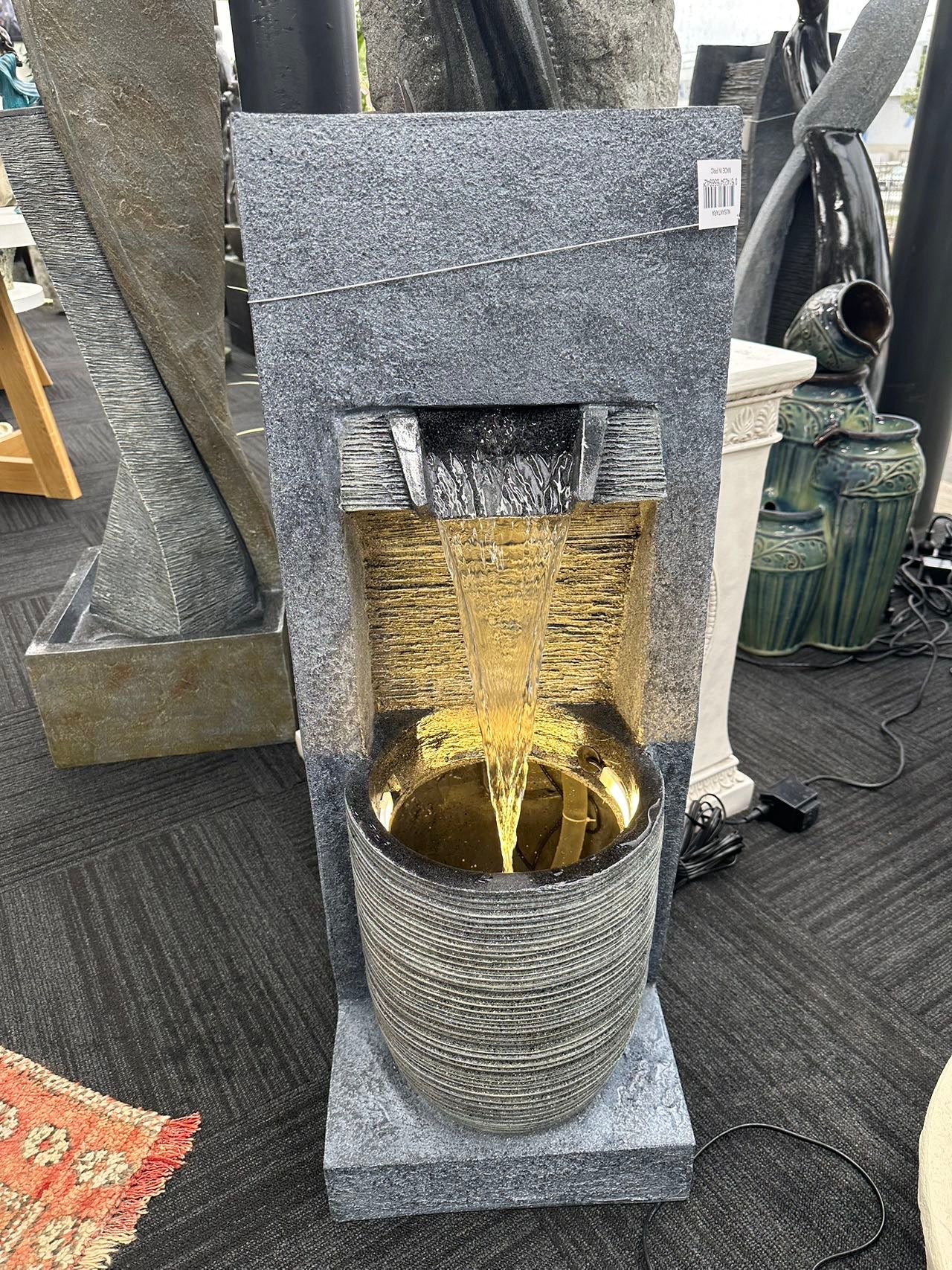 A plug & play concept, does not require plumbing or an electrician. This a free standing, self contained water feature that can be transported easily.