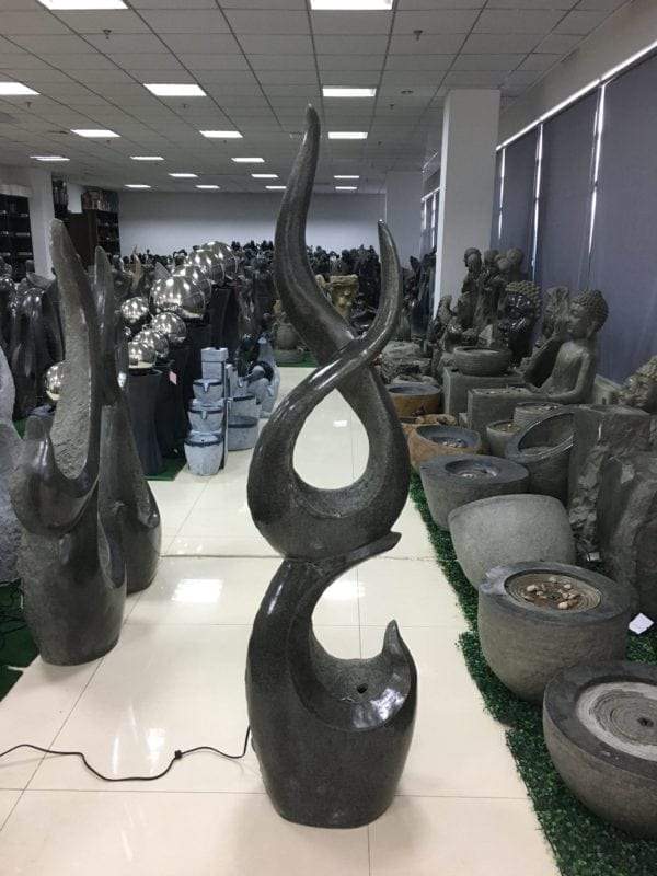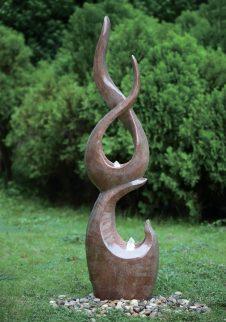 Abstract art water feature with 2 level water bubble & 2 LED lights, sandstone colour finish made of fiber & polystone mixture.