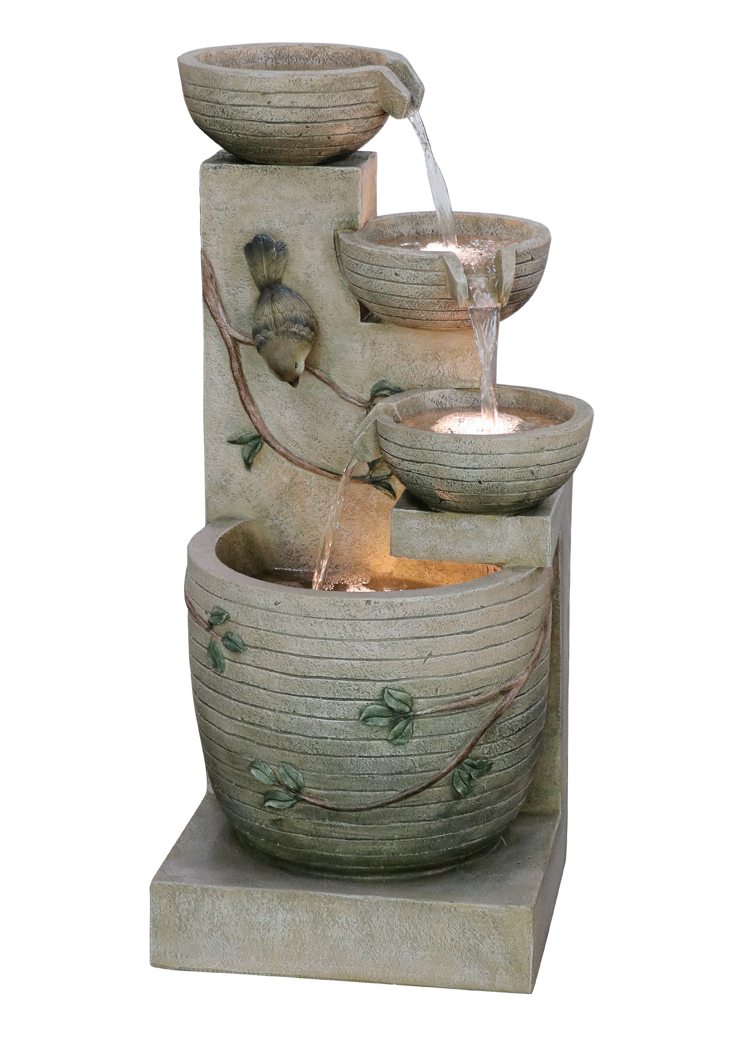 Package include fountain, electric water pump, LED Lights, Manual of Instructions & 1 year warranty.