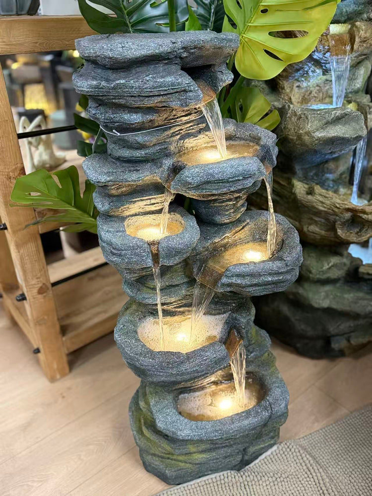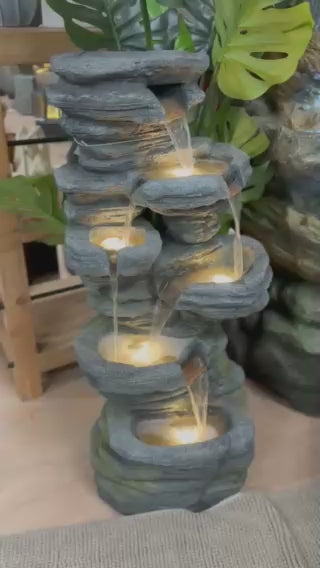 Comes with LED lights – This feature comes with an LED cluster light, which illuminates the water and makes this water feature perfect for using at night