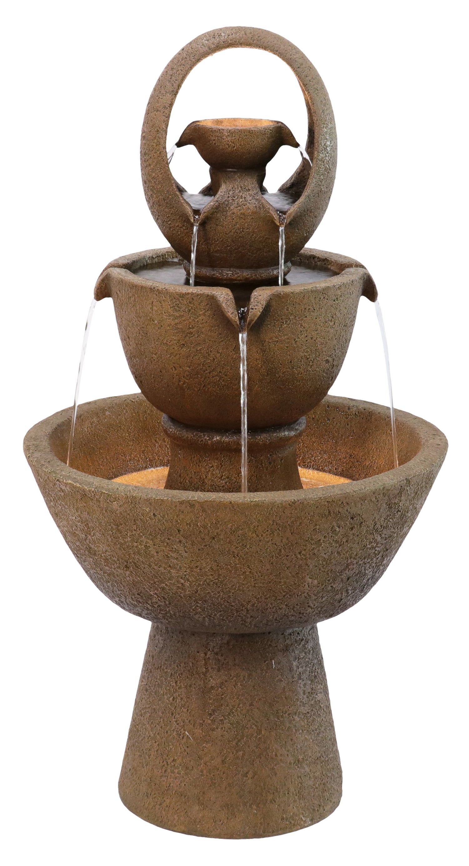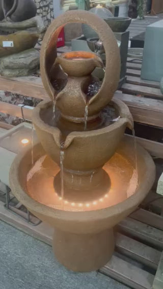 It has 4 intricate layers of water cascading with lights and symmetry to produce a wonderful water sound. Comes in earthy colour and stands out as a unique top quality fountain.