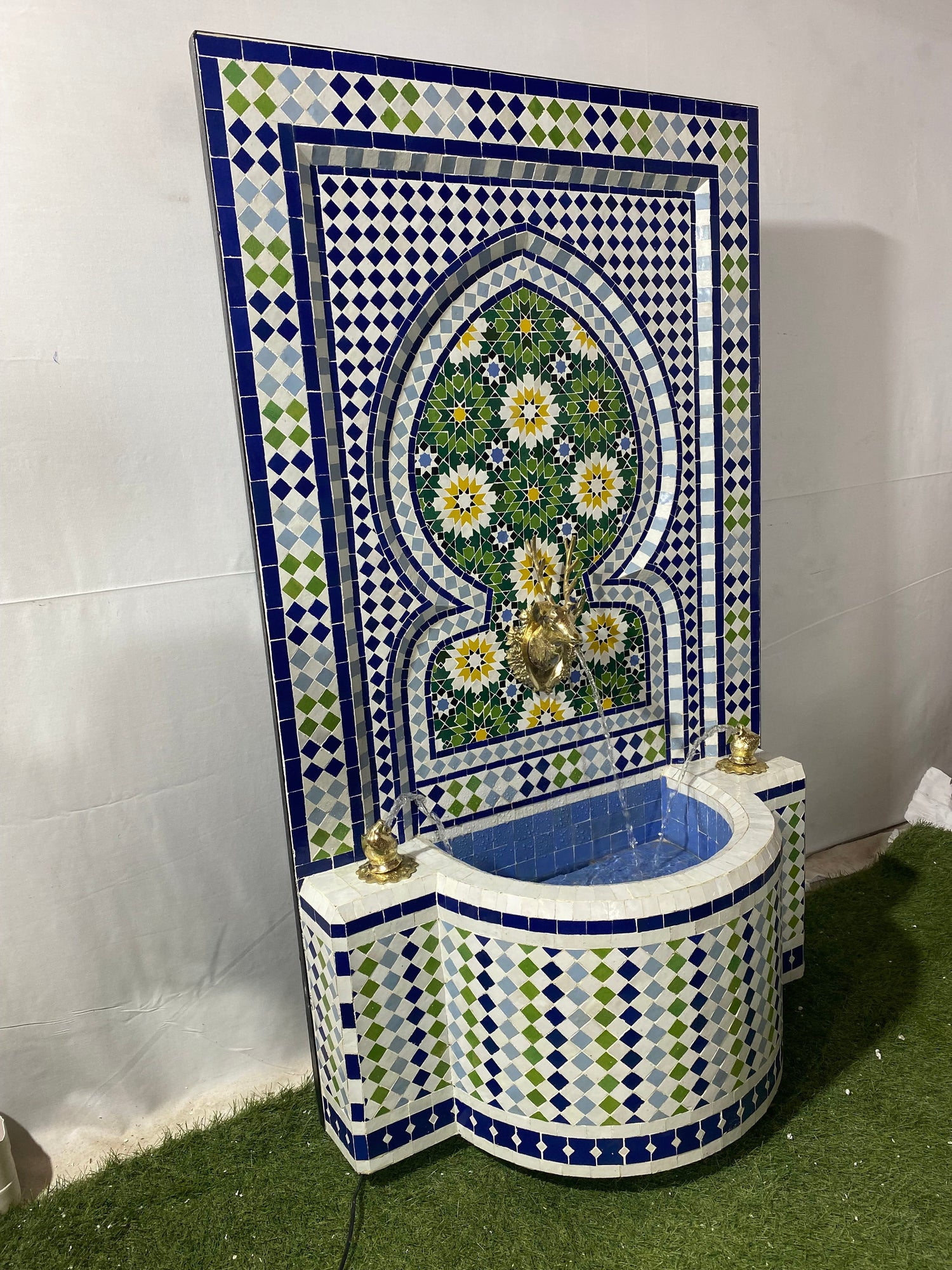 Tiered water Mosaic Fountain for Outdoor and Indoor, Mid Century Fountain water inside, Moroccan Mosaic Fountain