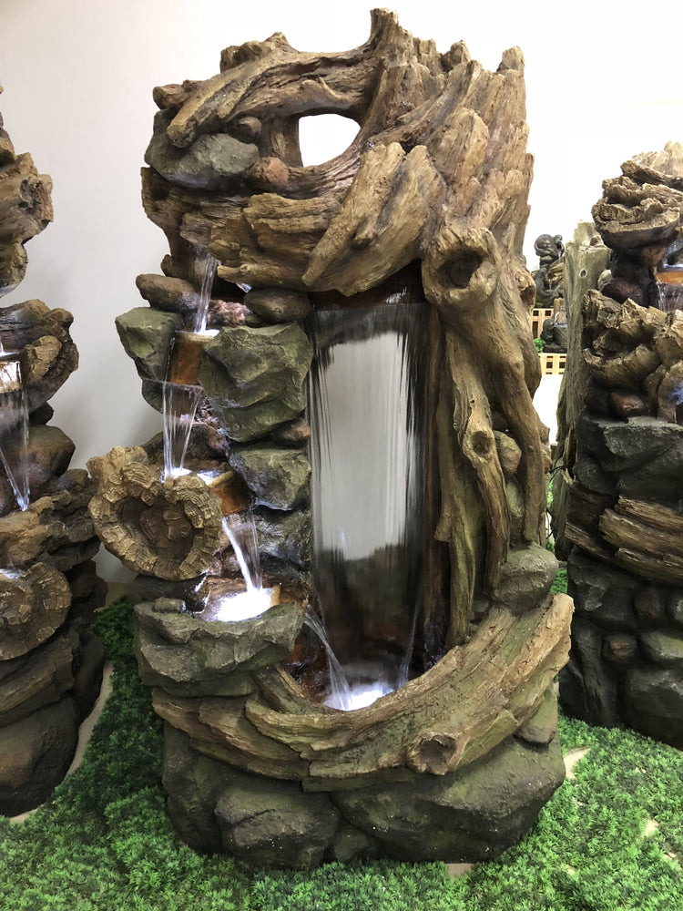 Bring a sense of natural tranquillity to your garden with this striking woodland inspired water feature. With five integrated LED cluster lights, this feature is a striking addition to your garden both by day and night. Constructed from polyresin for extra durability, this water feature has been finished by hand to look just like real wood. This feature is self contained, saving you time and money as there’s no need to purchase or dig an external reservoir. This also means that it can go almost anywhere in your garden.