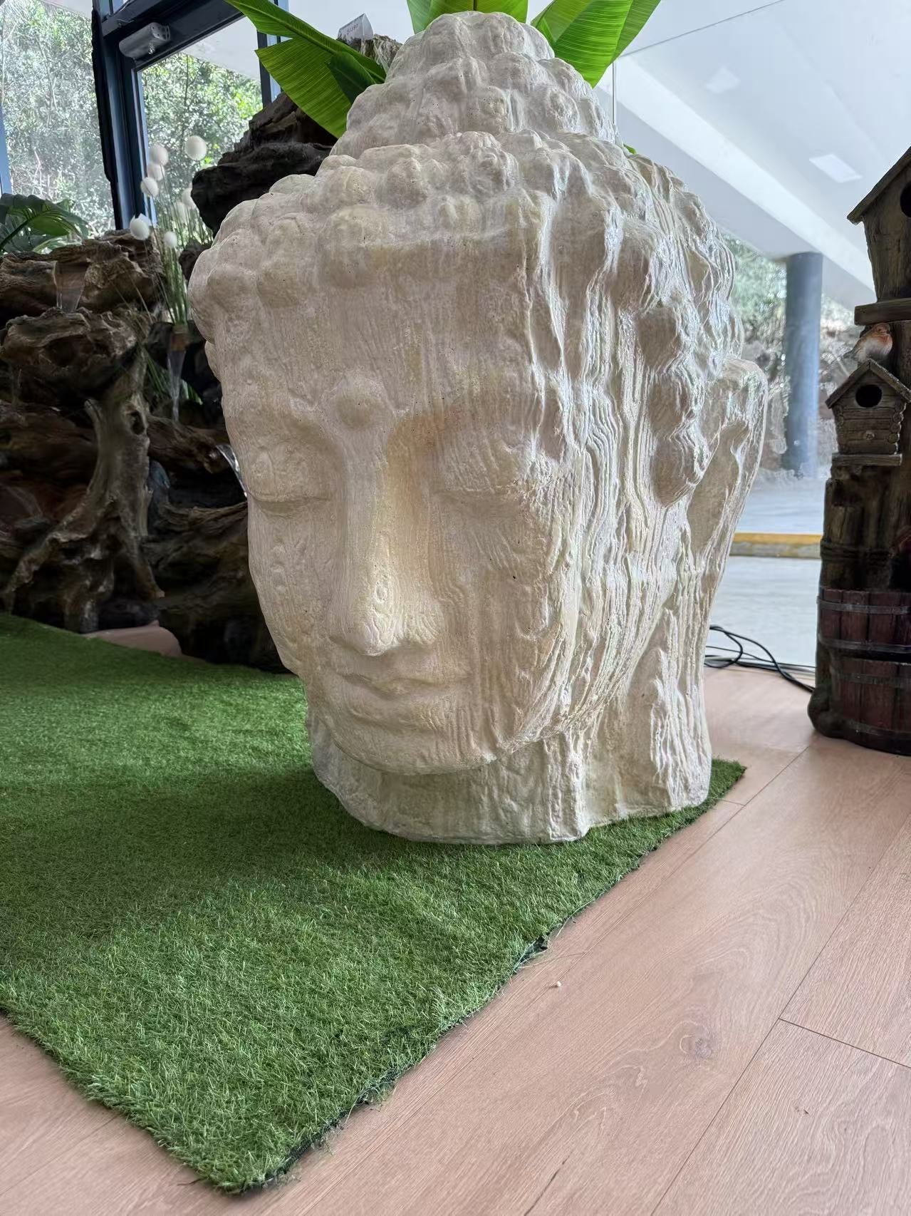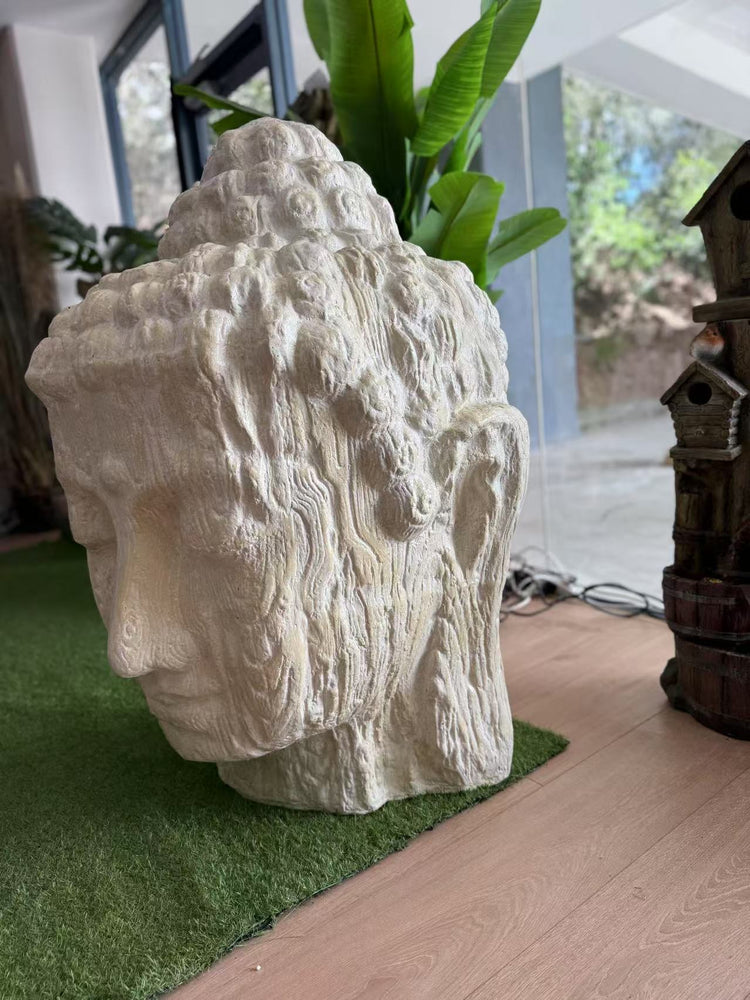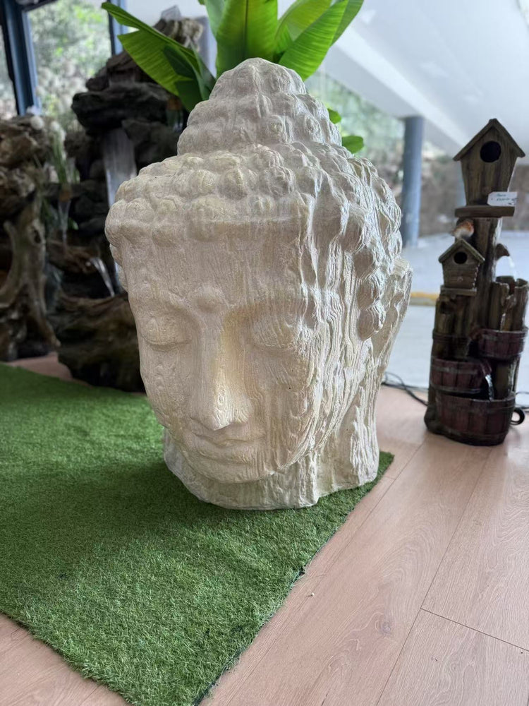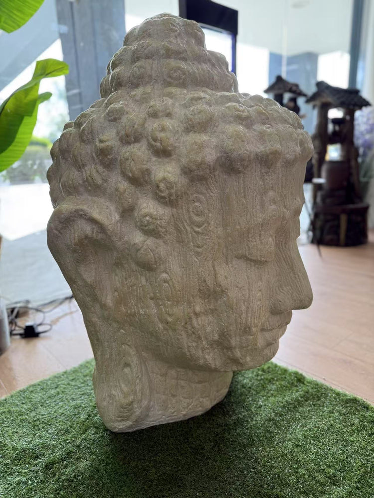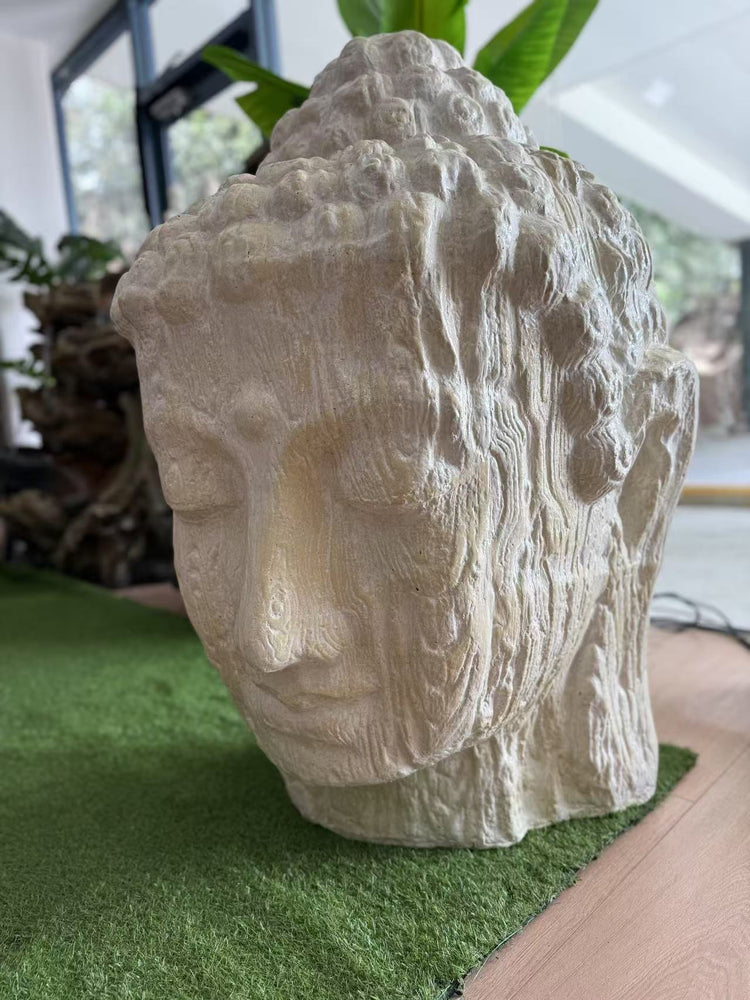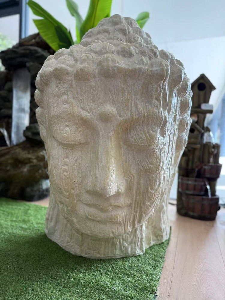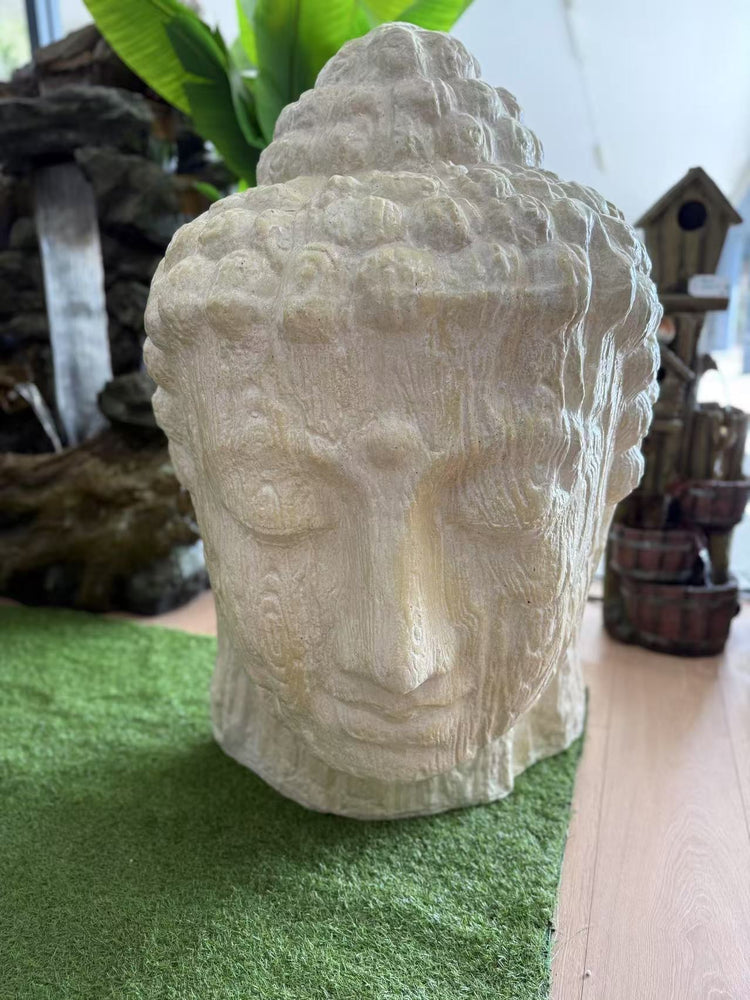 Zen Buddha Head Statue Sandstone Cement Fibre Wood Motif