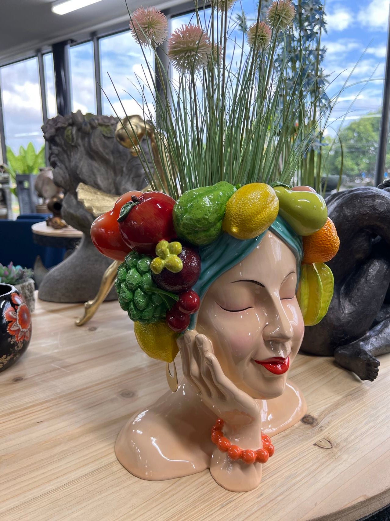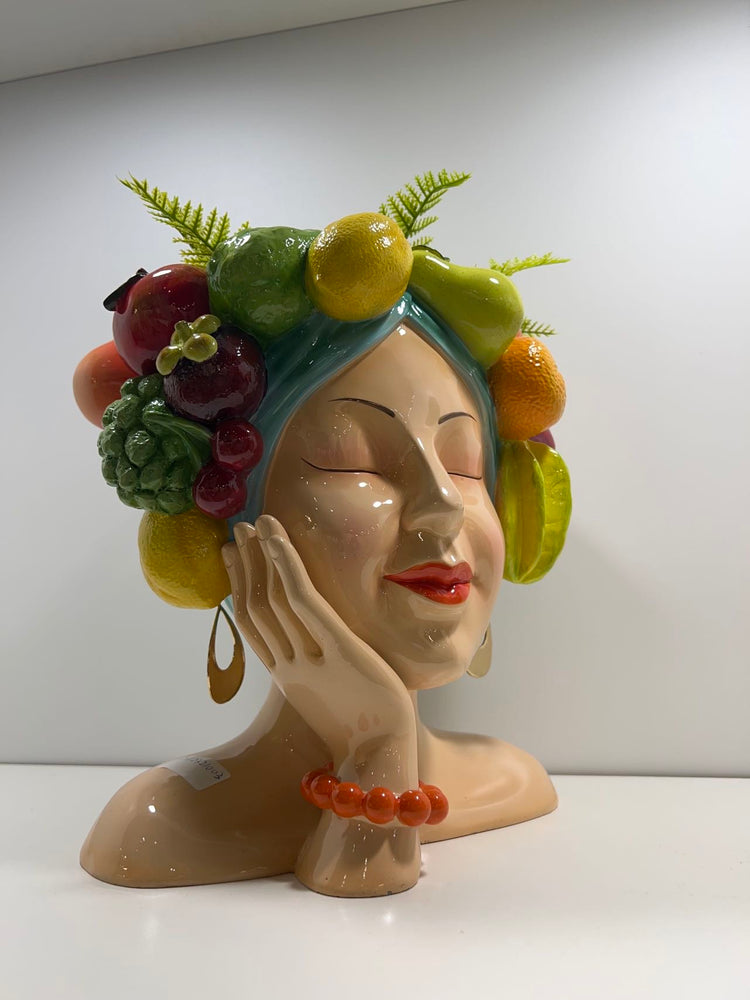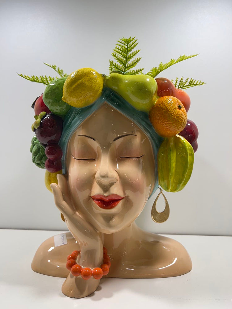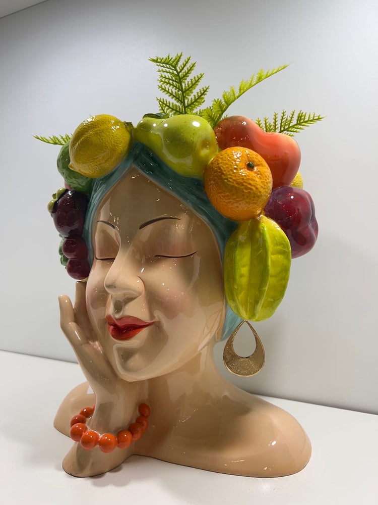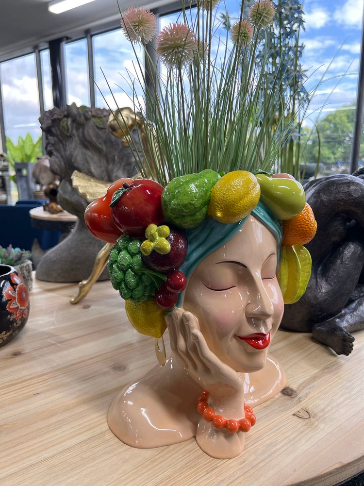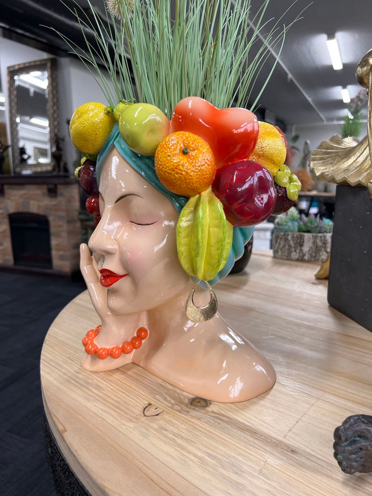 Acapulco Planter Head with Fruits & Earrings in Vivid Colours Ceramic Finish