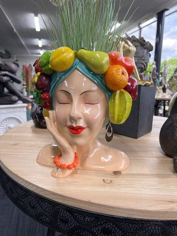 Our newly designed stunning Carmen Miranda Inspired Planter shaped ornament with vivid colours featuring fruits.