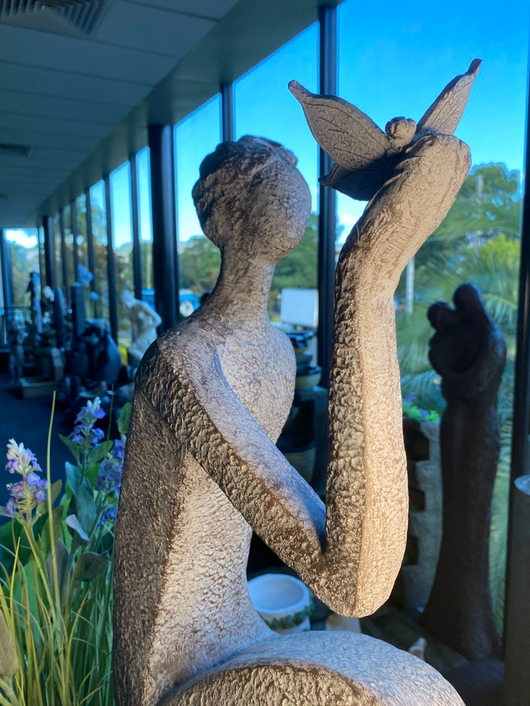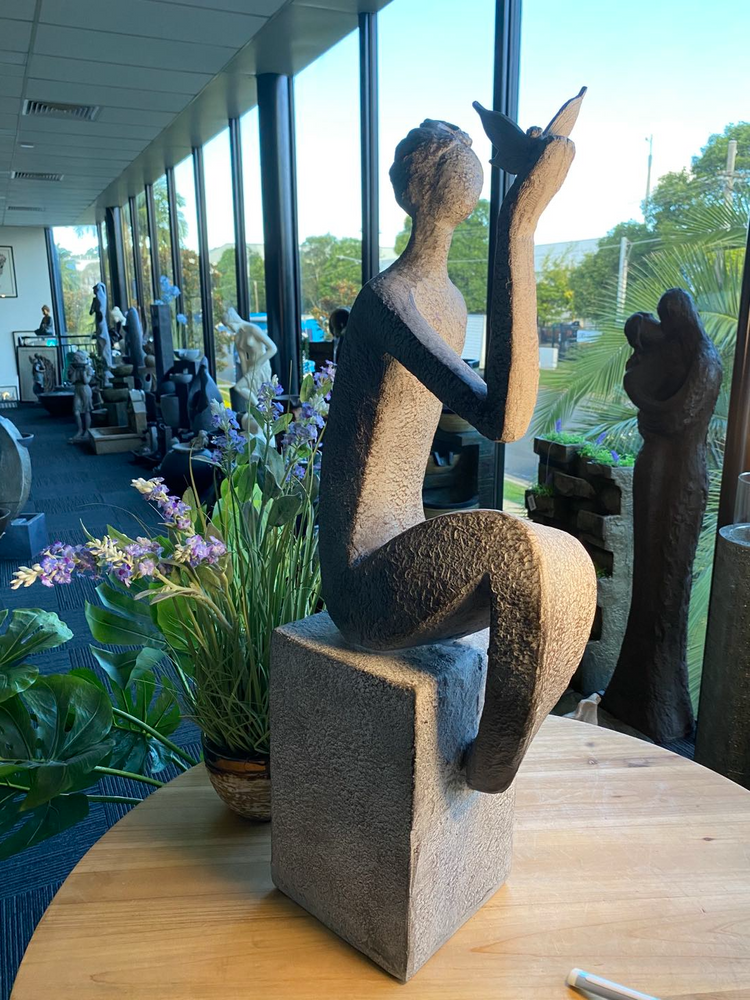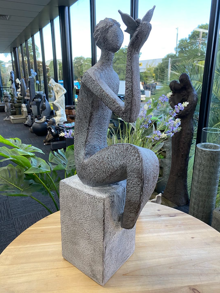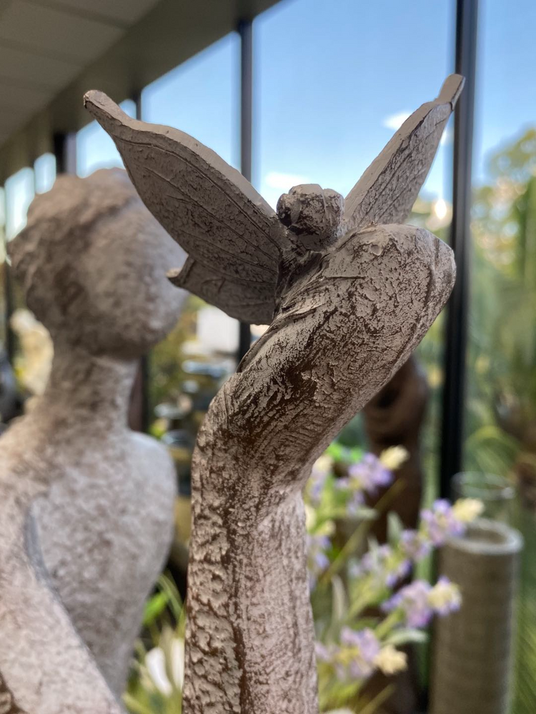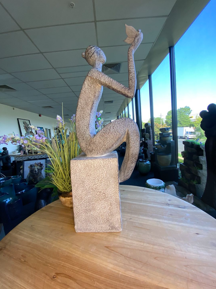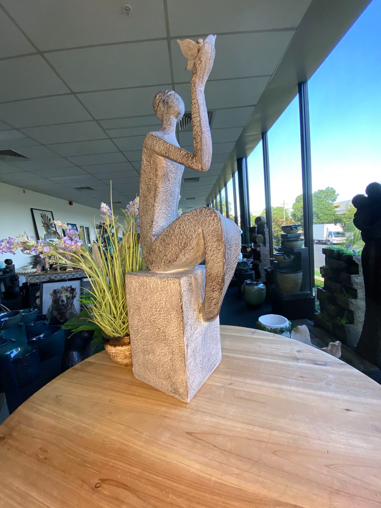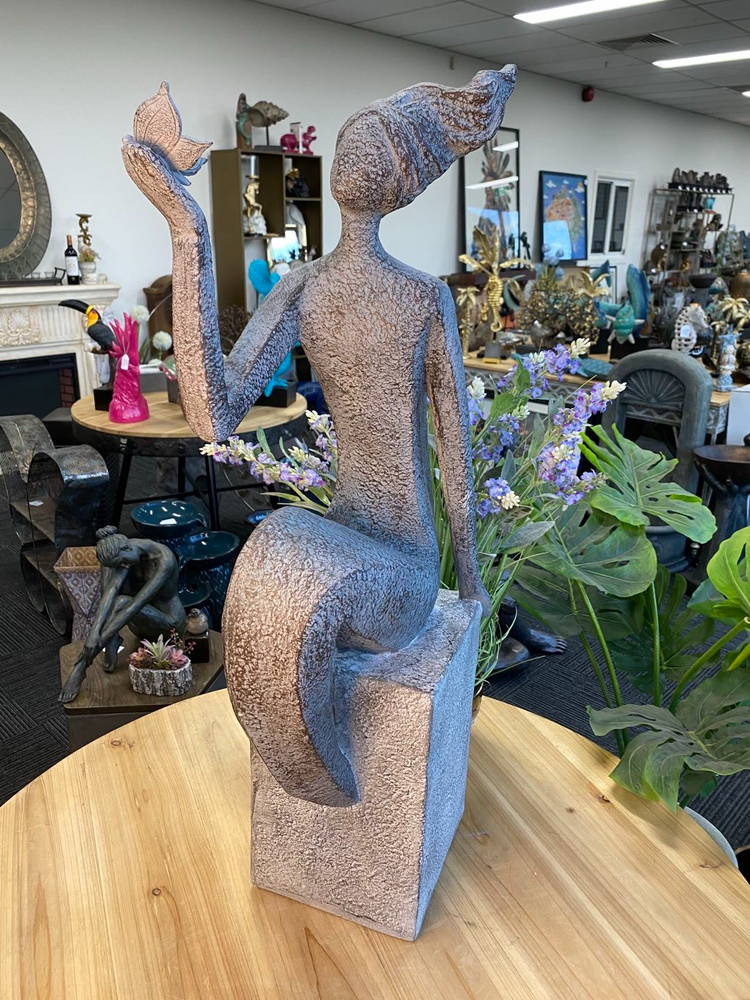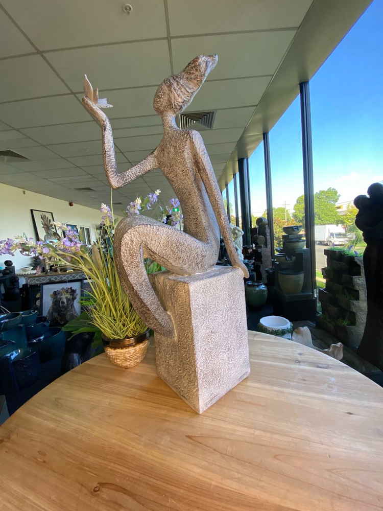 Abstract Figure of Gorgeous Lady on Plinth with a Butterfly on Hand.