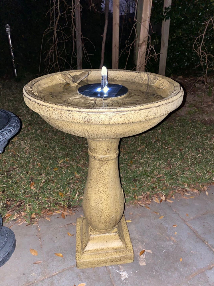 This birdbath resonates with Victorian elegance and charm. Built from high quality polyresin, and featuring a beautiful butterfly motif, this birdbath is sure become the centre of attention in your garden. This product is self-contained and solar powered, meaning you can position it anywhere in the garden, even paved or decked areas. Water can start from centre or from butterfly towards the centre of the bird bath.
