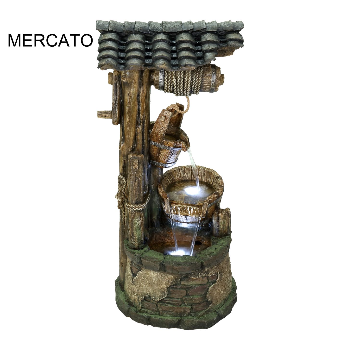 Create a stunning focal point in your garden with this exquisitely designed water feature. As the water trickles from the buckets into the well it is lit up beautifully by the LEDs, ensuring that you can enjoy your water feature no matter what the time is. Crafted from polystone, so you can enjoy the intricate detail for many years to come.